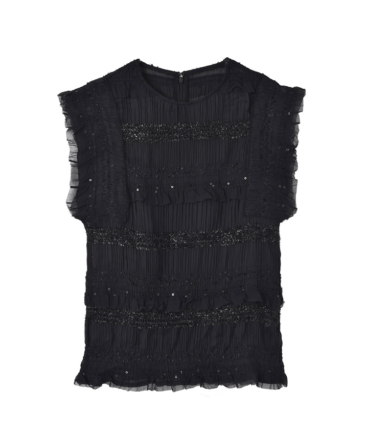たっぷりのギャザーとラメ糸が一点投入で華やぐブラウス