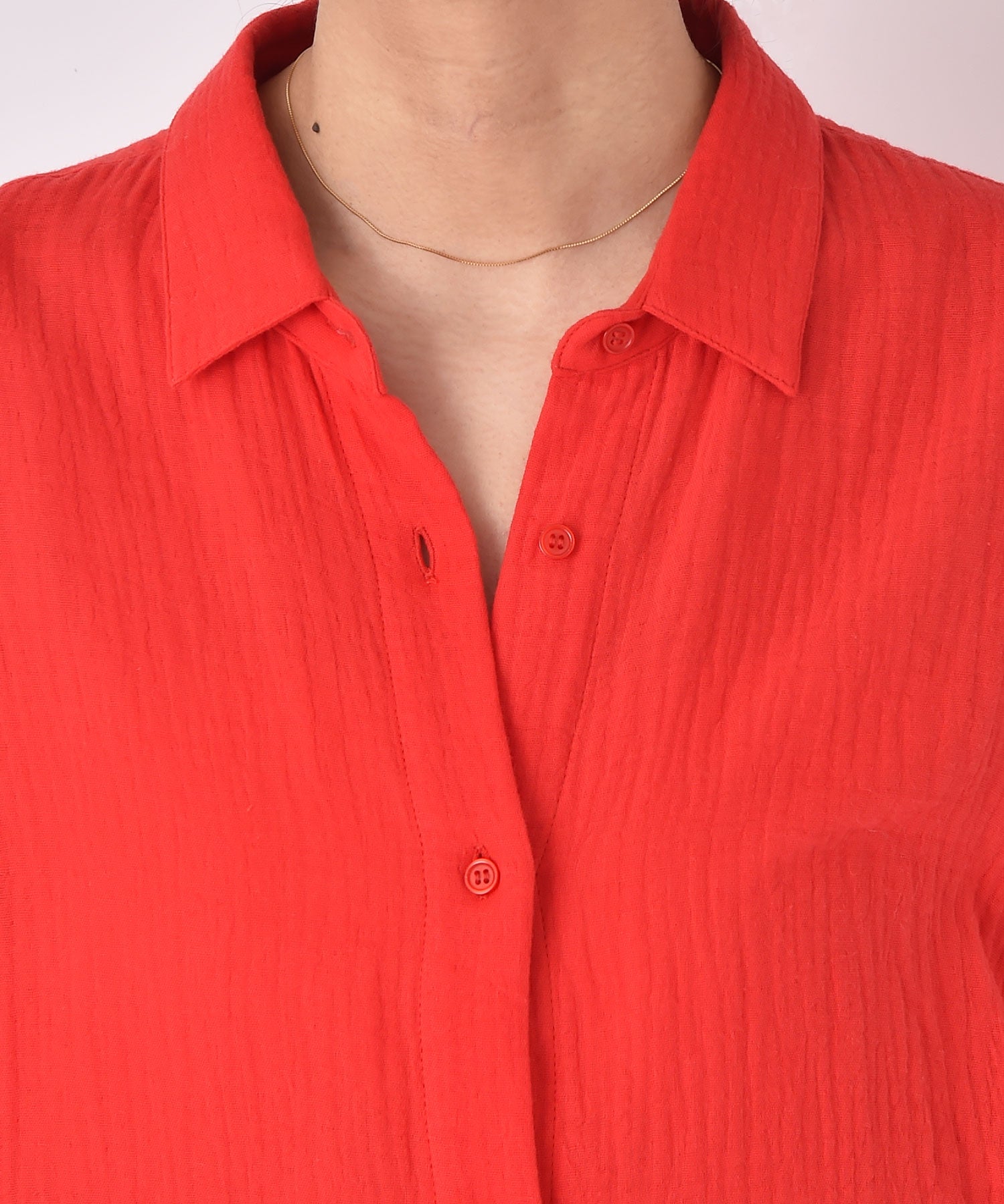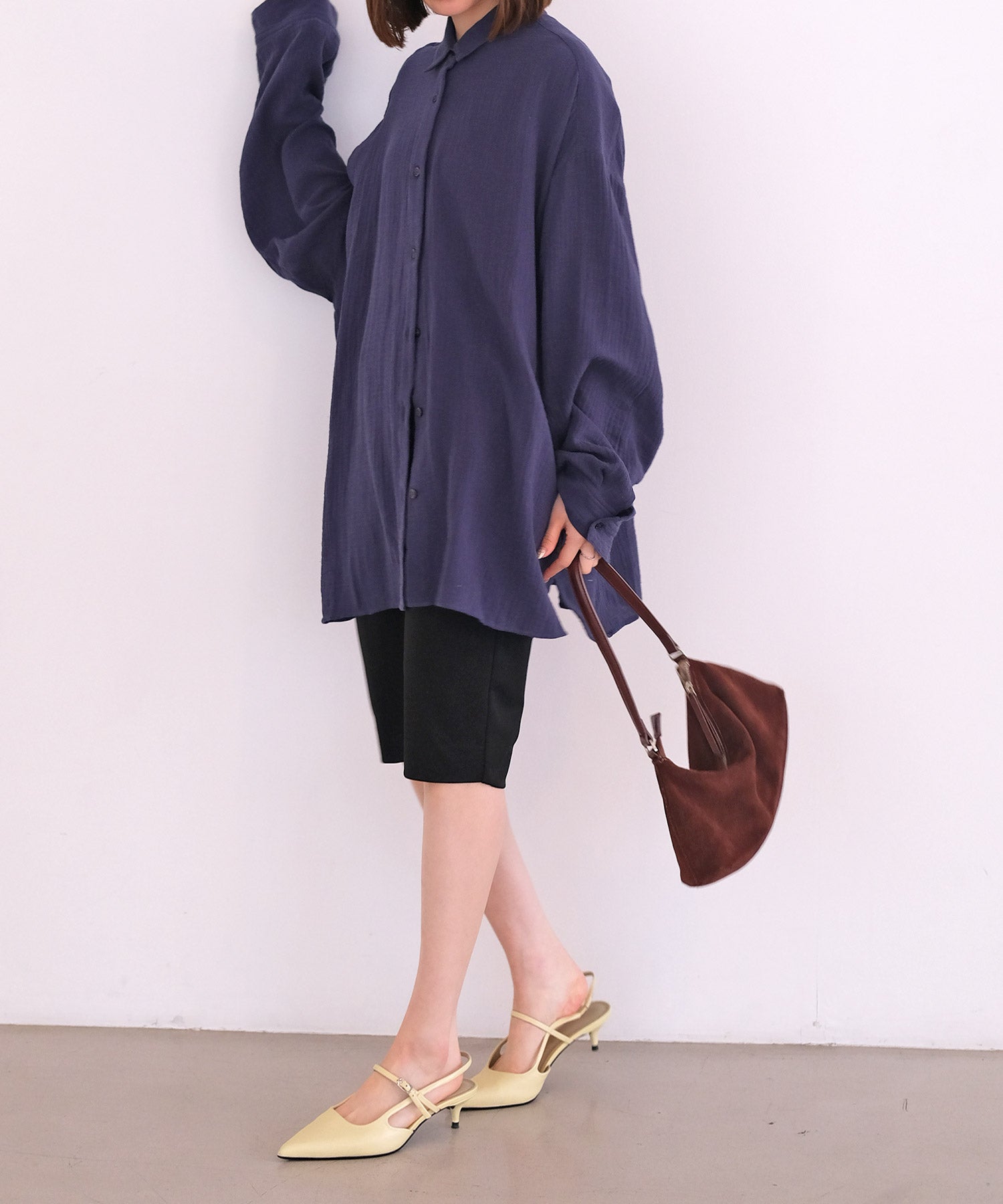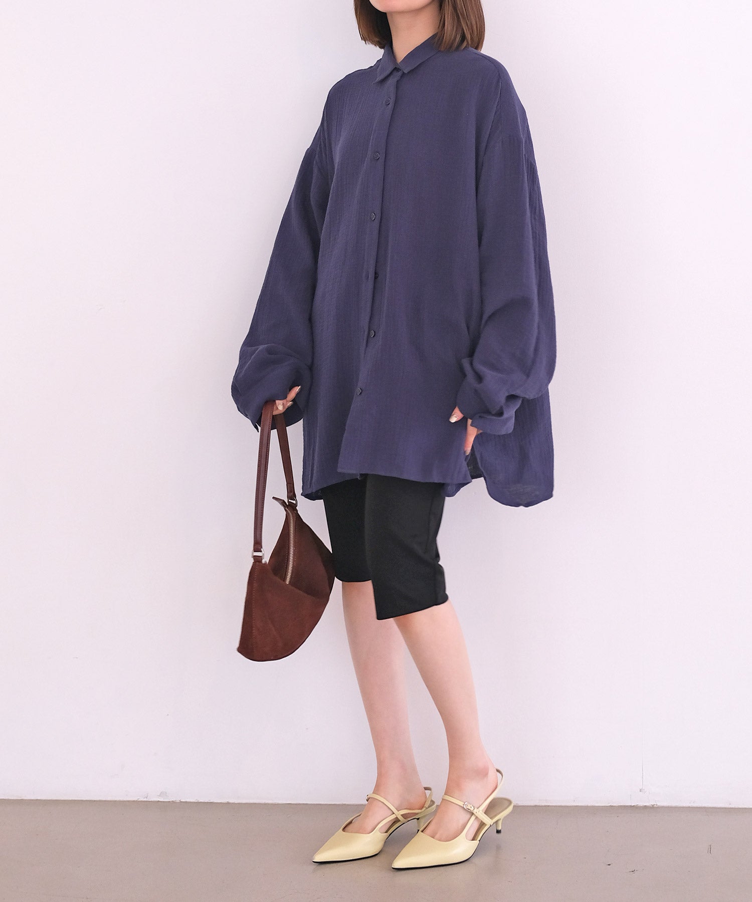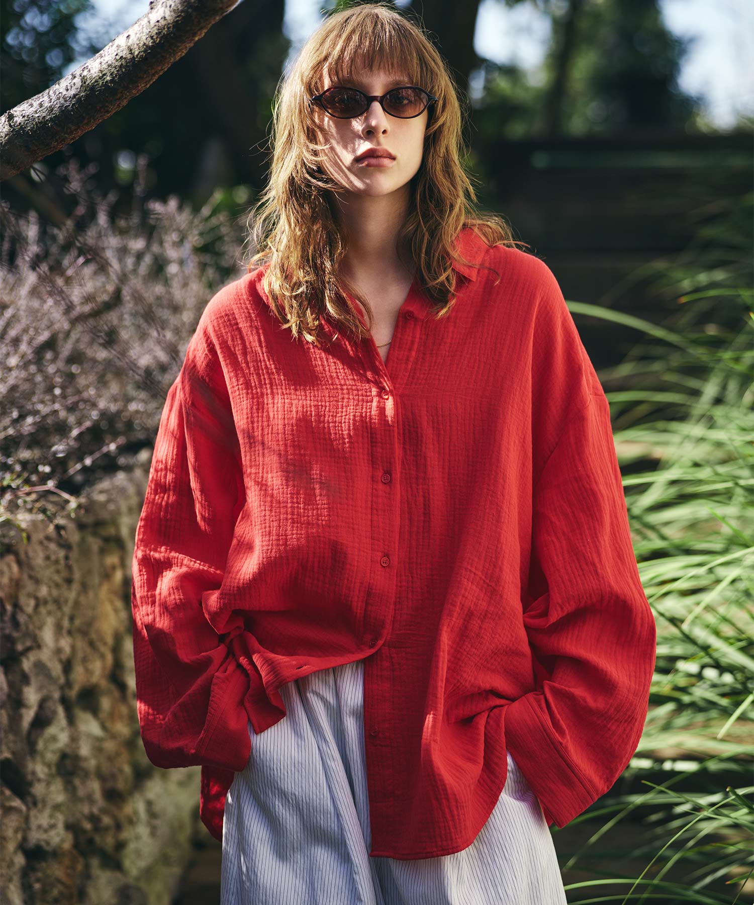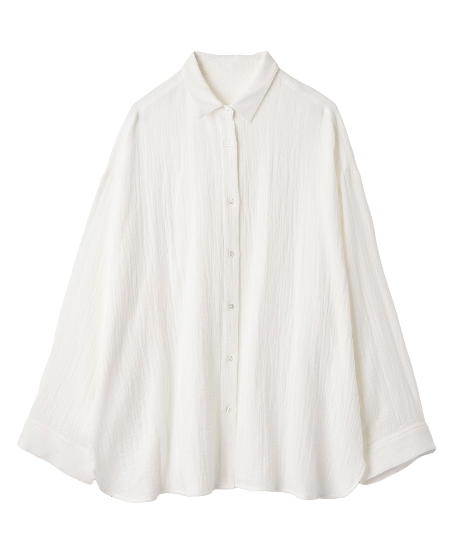 柔らかいコットンガーゼ素材を使用した、軽やかでヘルシーな印象にまとめてくれるシャツ。