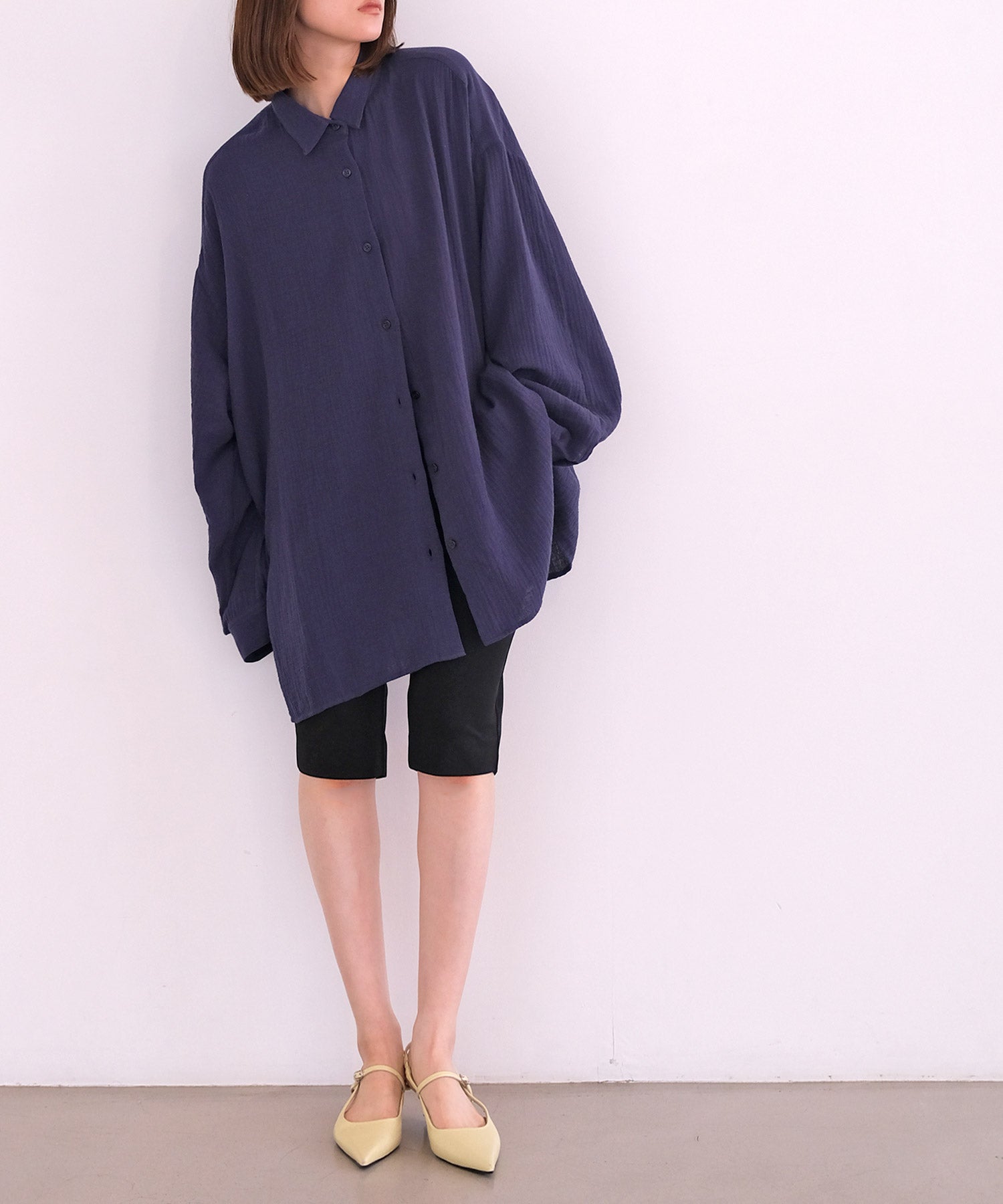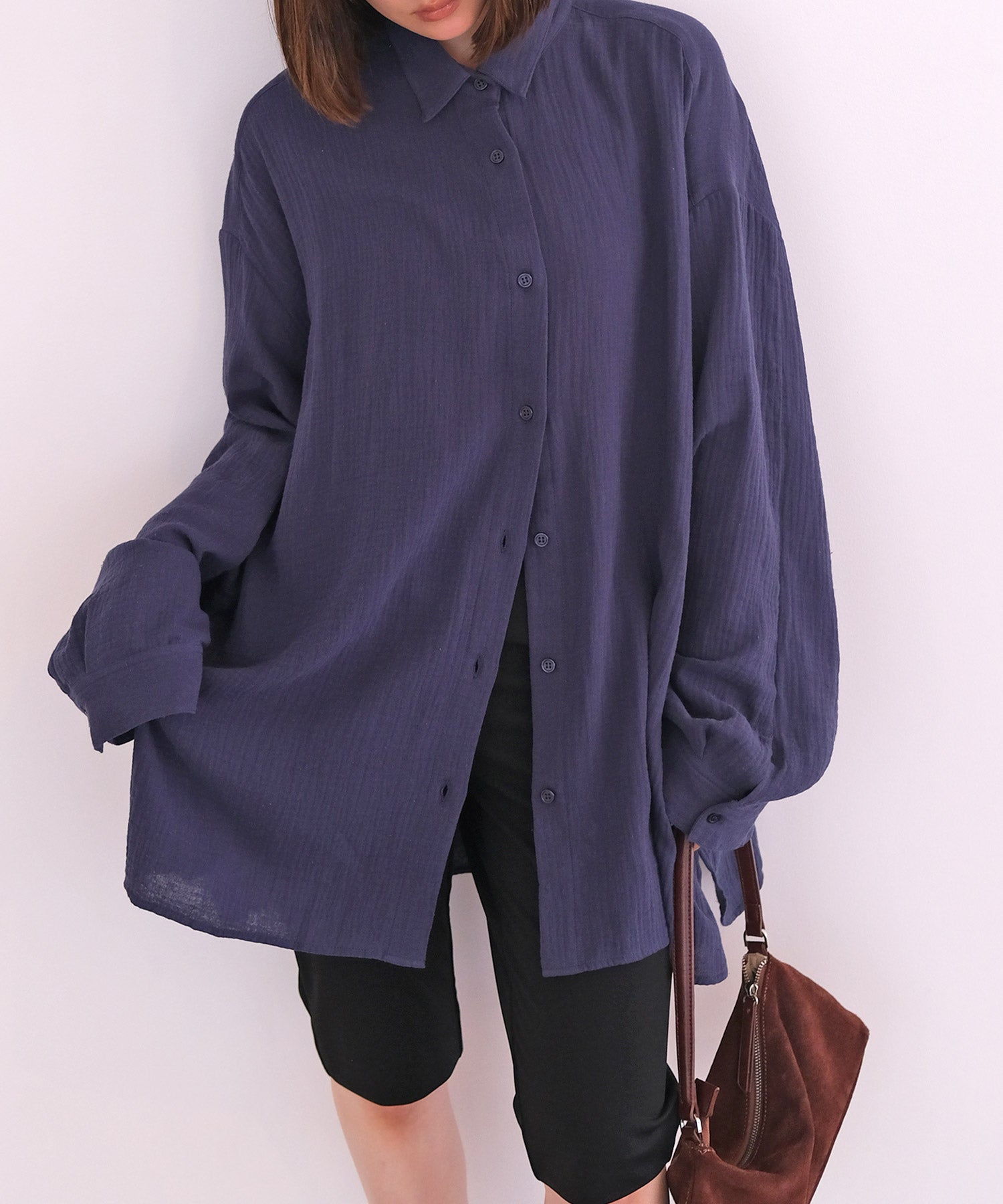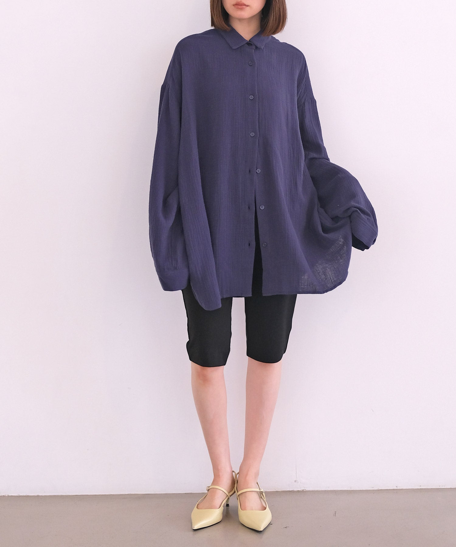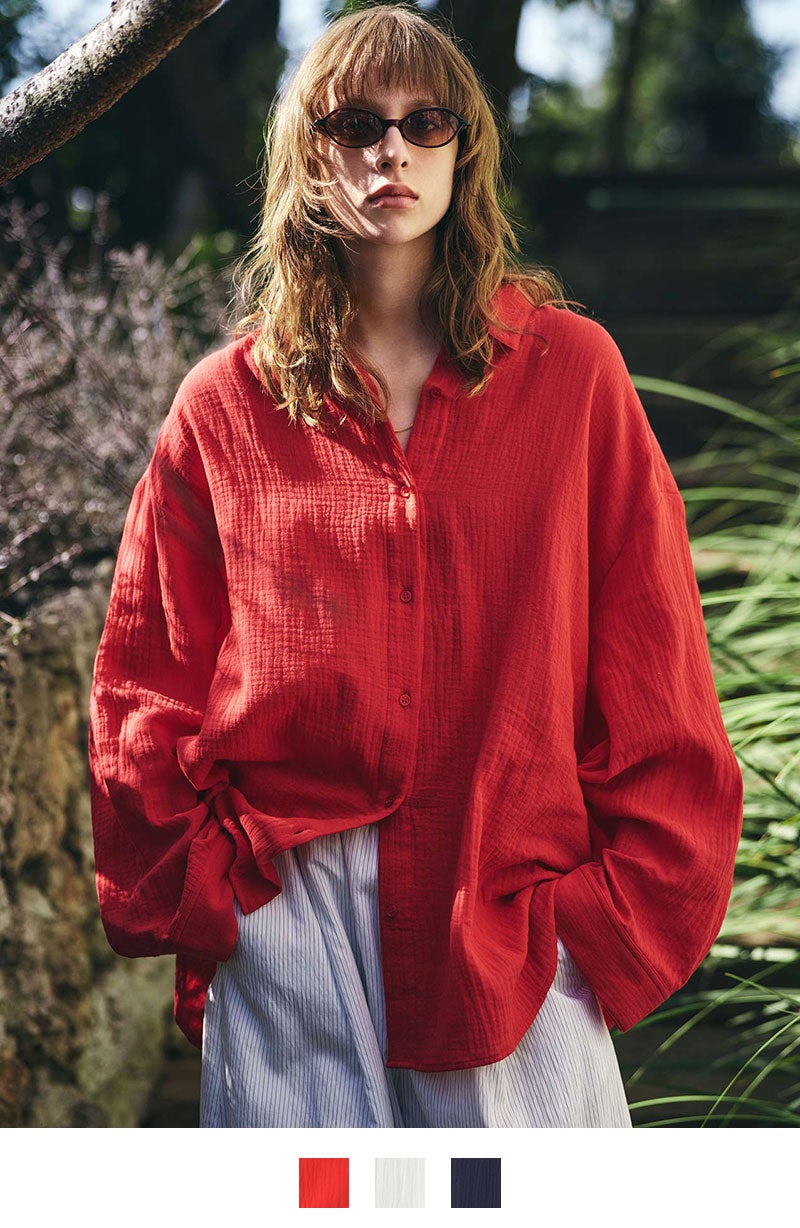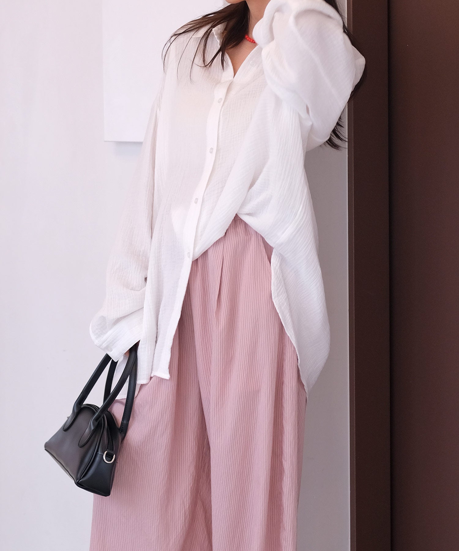 柔らかいコットンガーゼ素材を使用した、軽やかでヘルシーな印象にまとめてくれるシャツ。