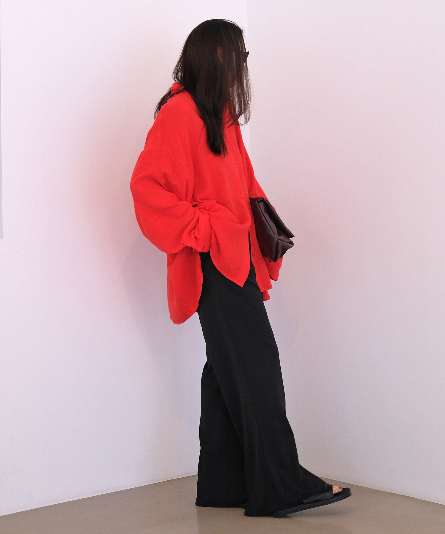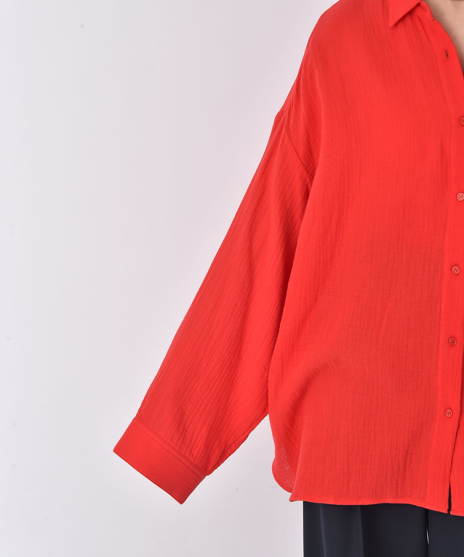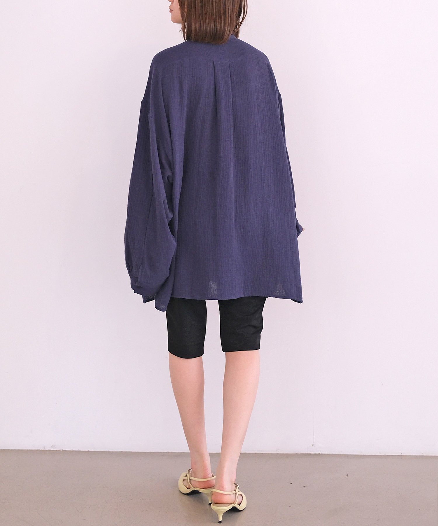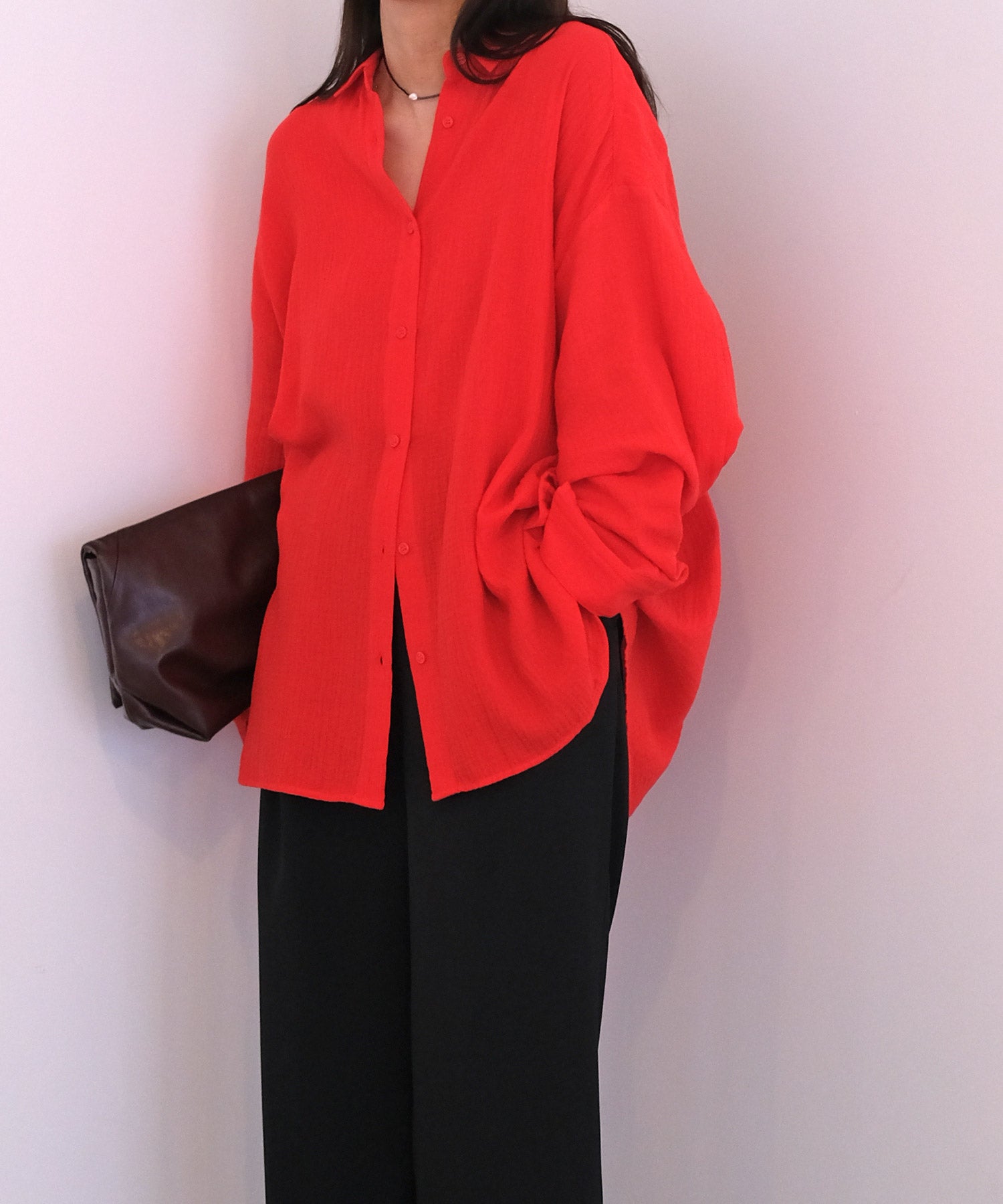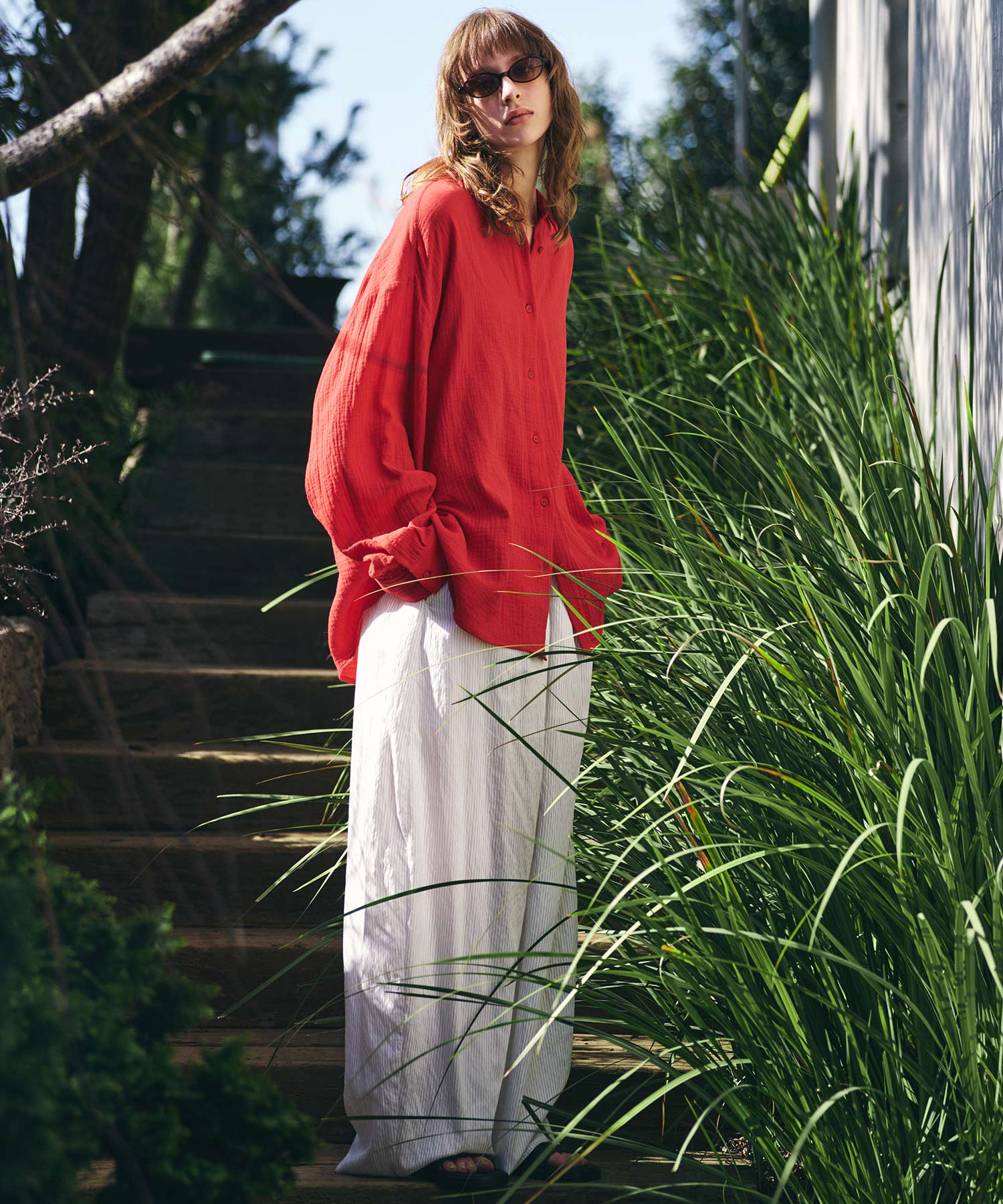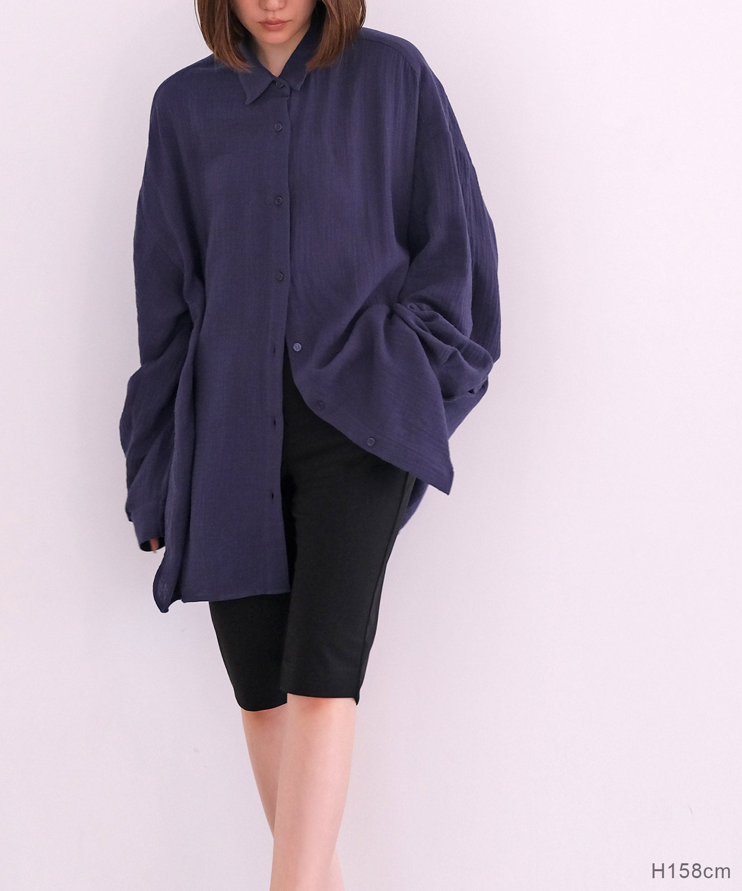 柔らかいコットンガーゼ素材を使用した、軽やかでヘルシーな印象にまとめてくれるシャツ。