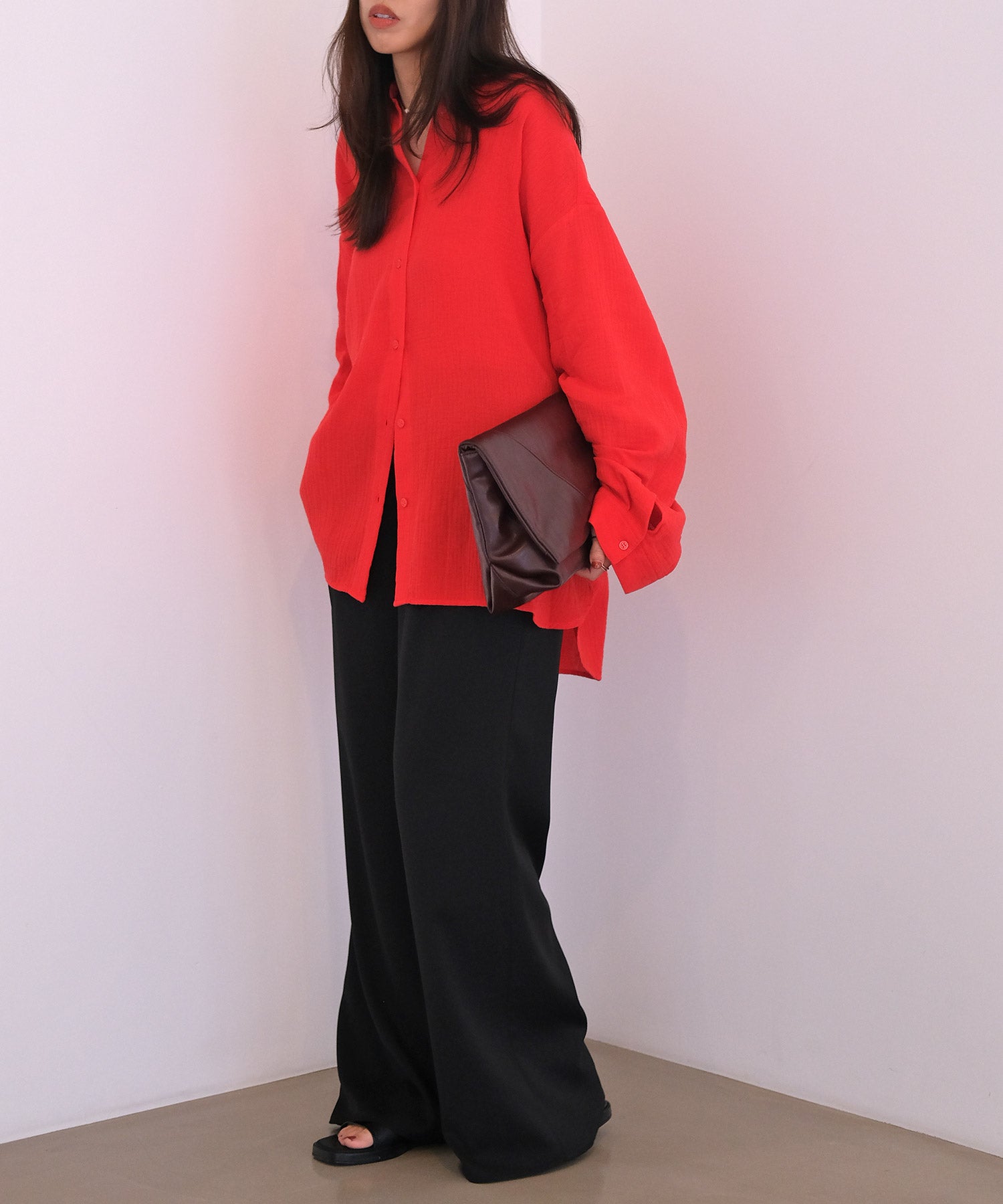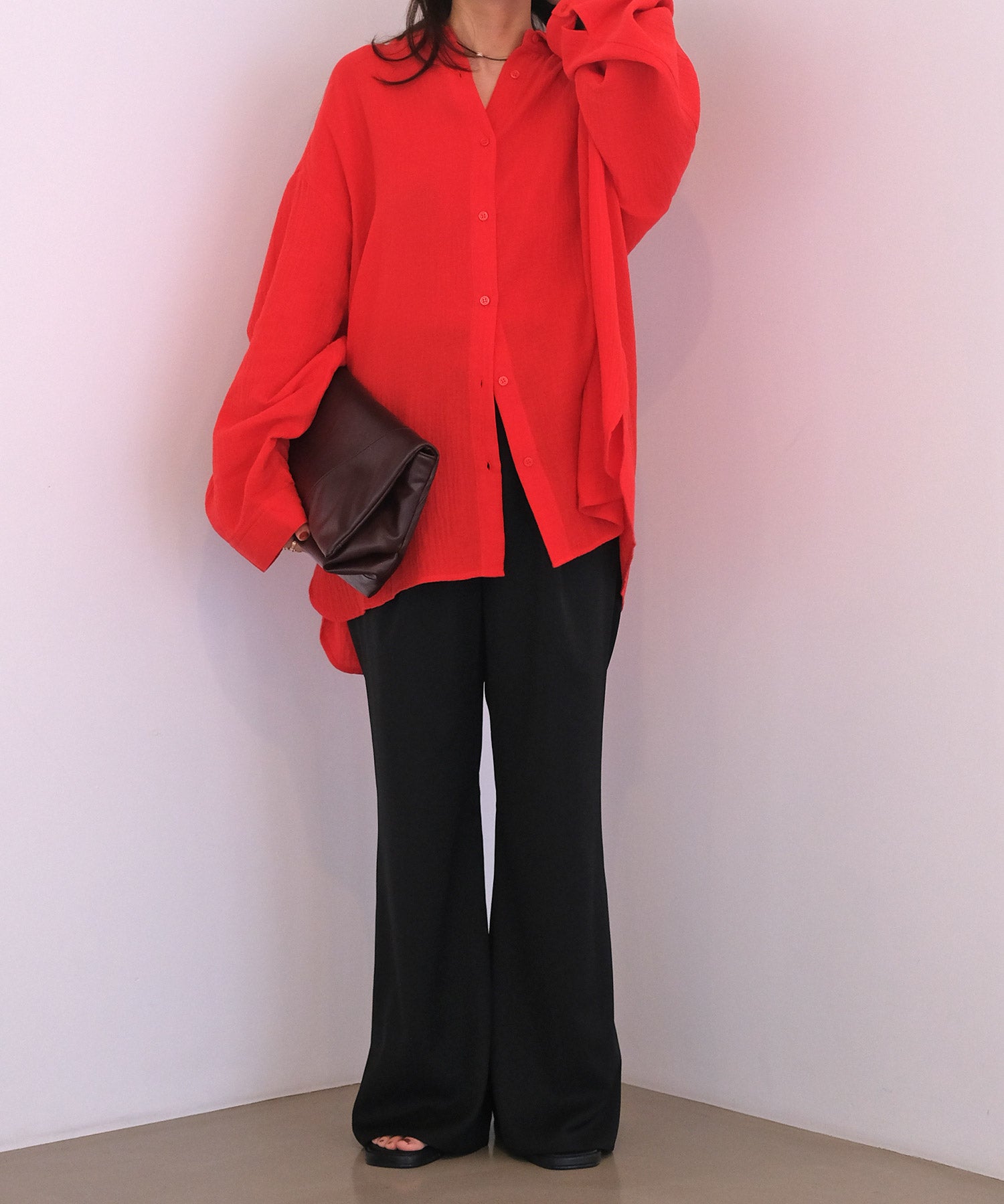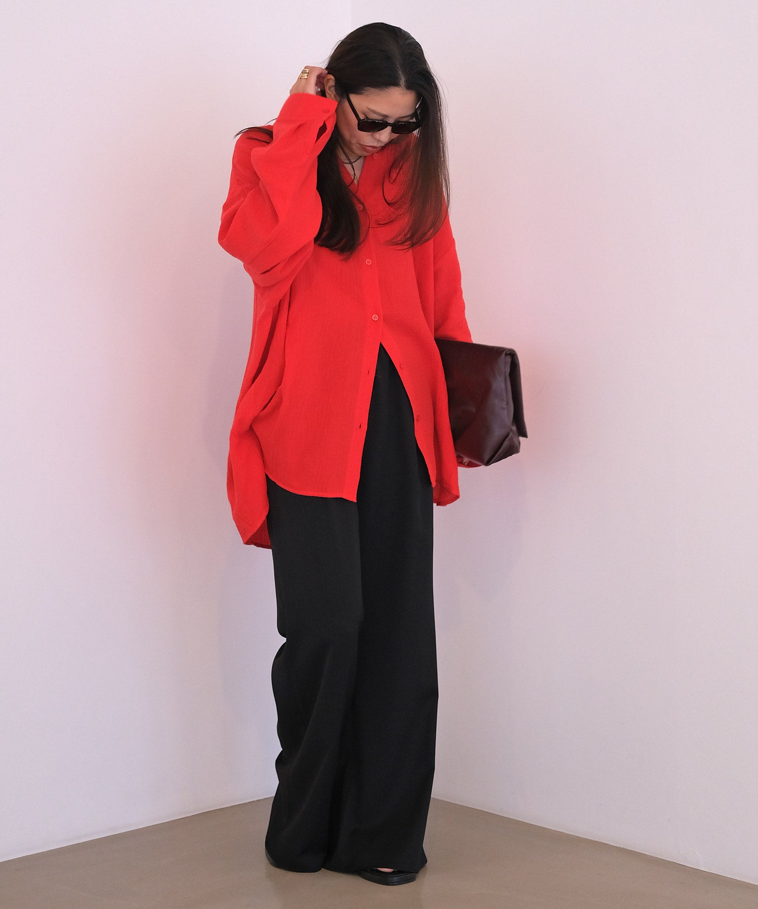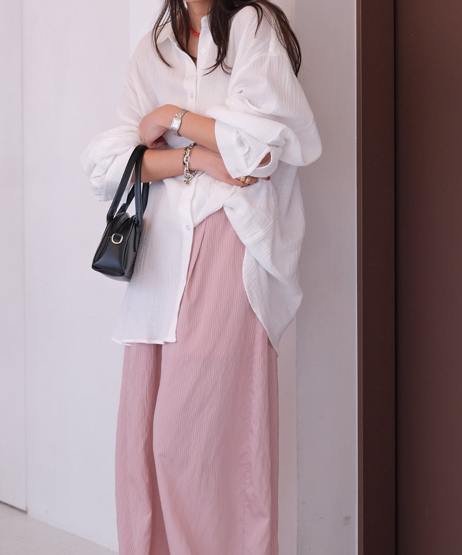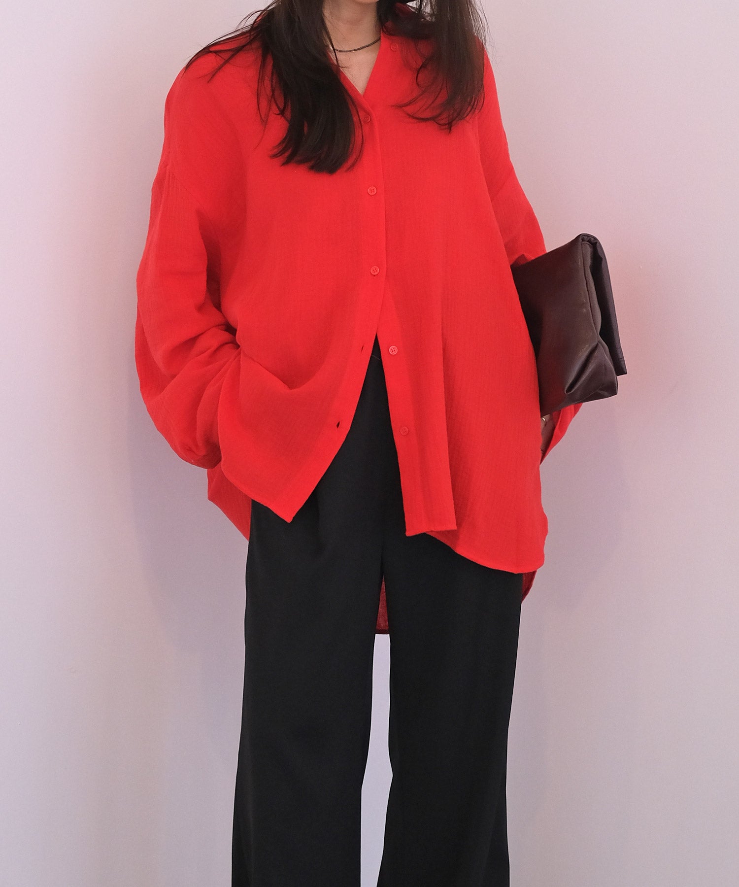 柔らかいコットンガーゼ素材を使用した、軽やかでヘルシーな印象にまとめてくれるシャツ。
