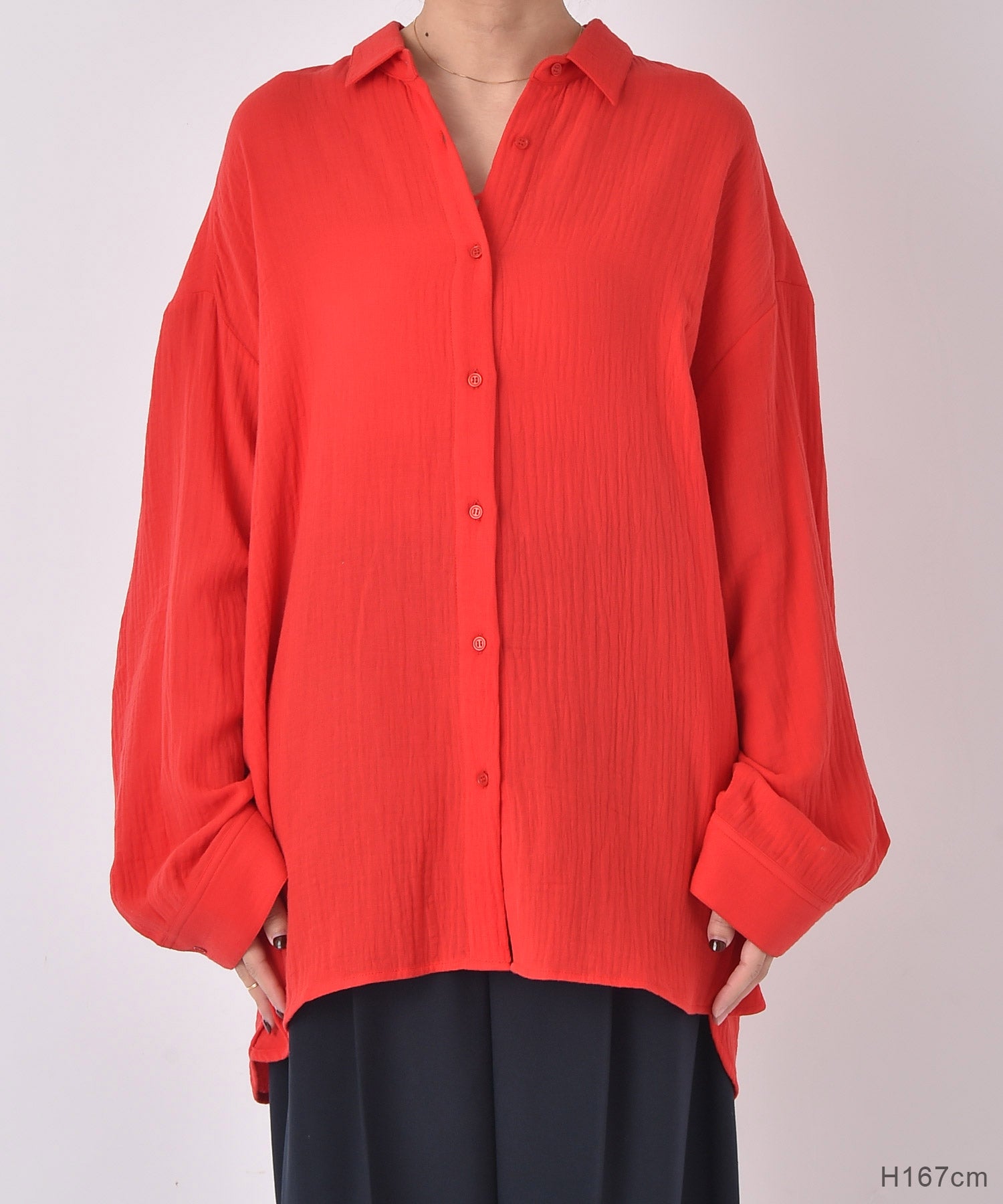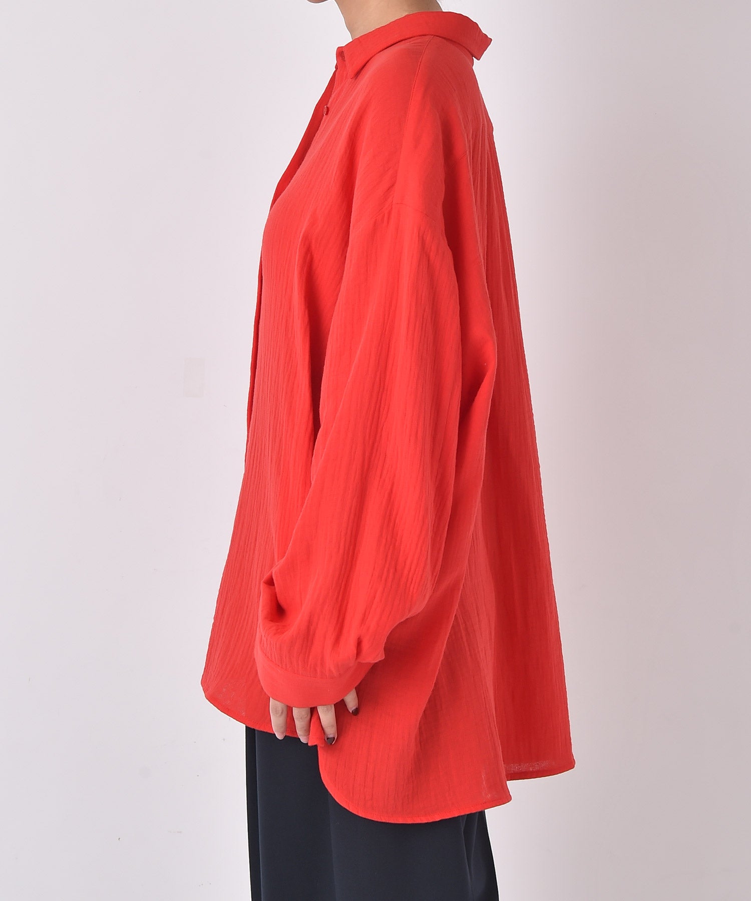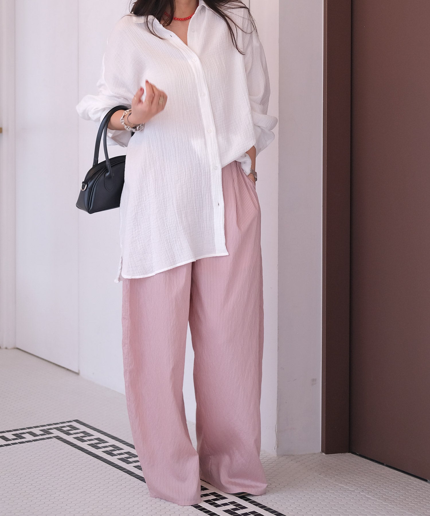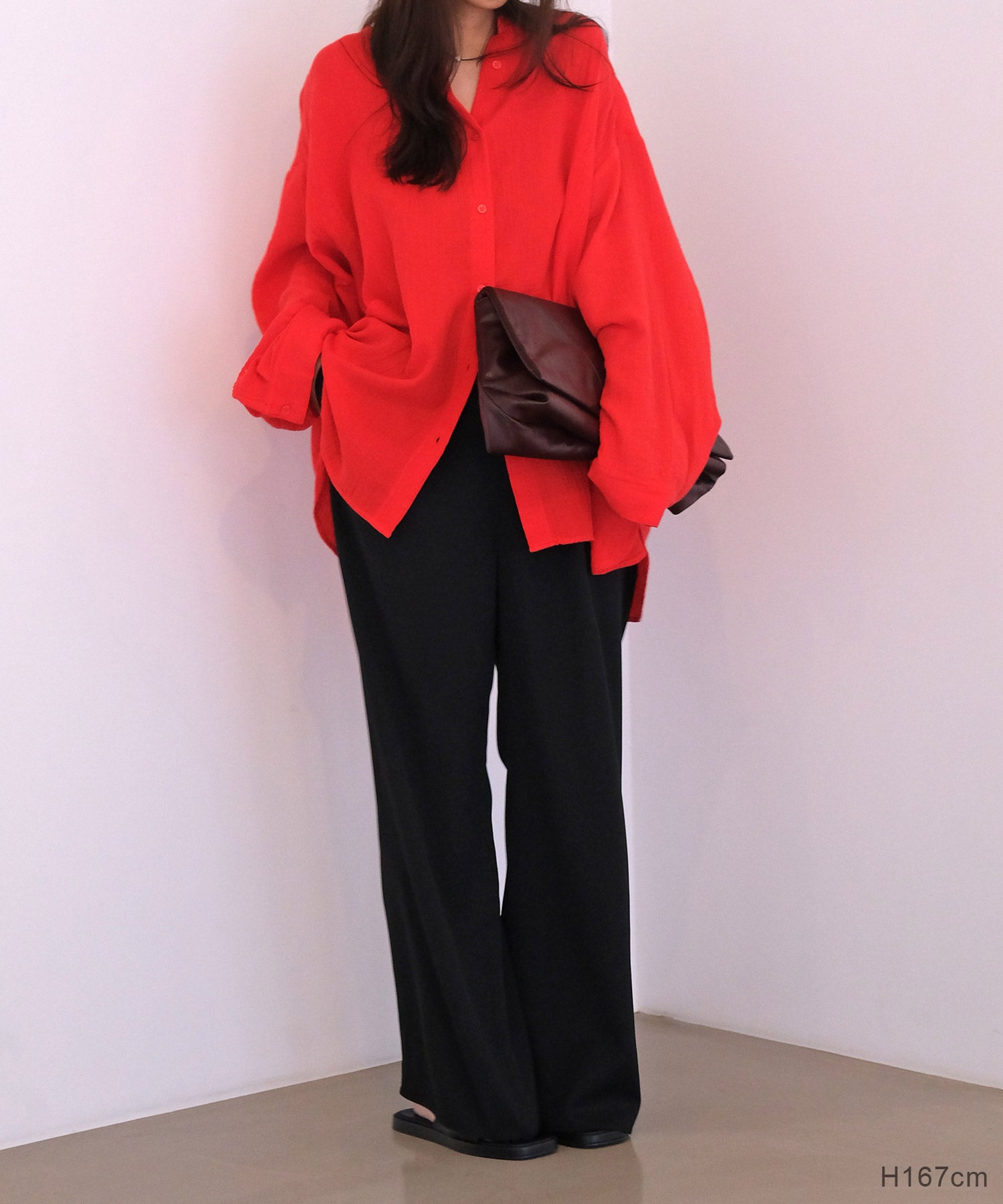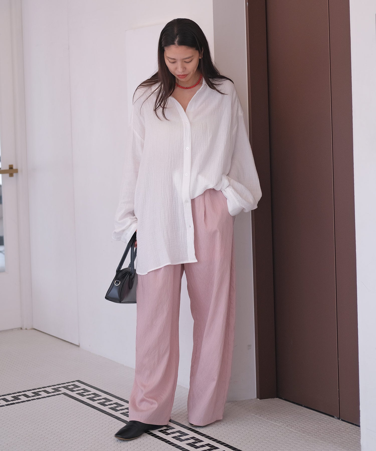 柔らかいコットンガーゼ素材を使用した、軽やかでヘルシーな印象にまとめてくれるシャツ。