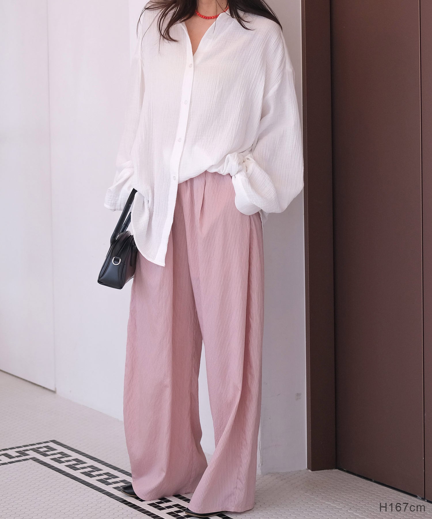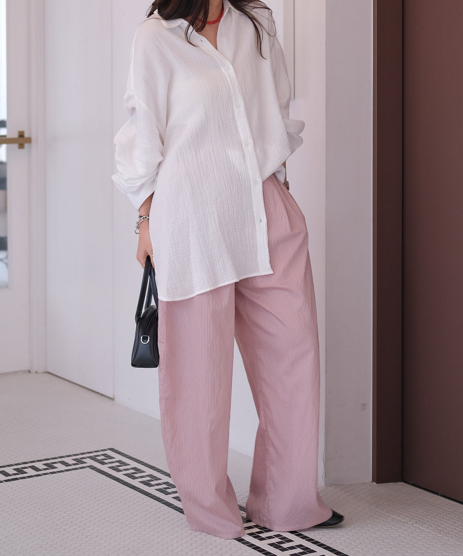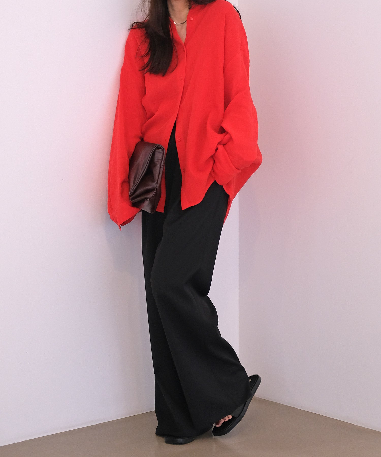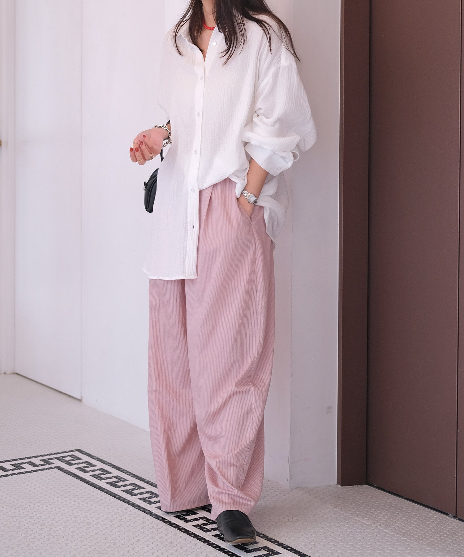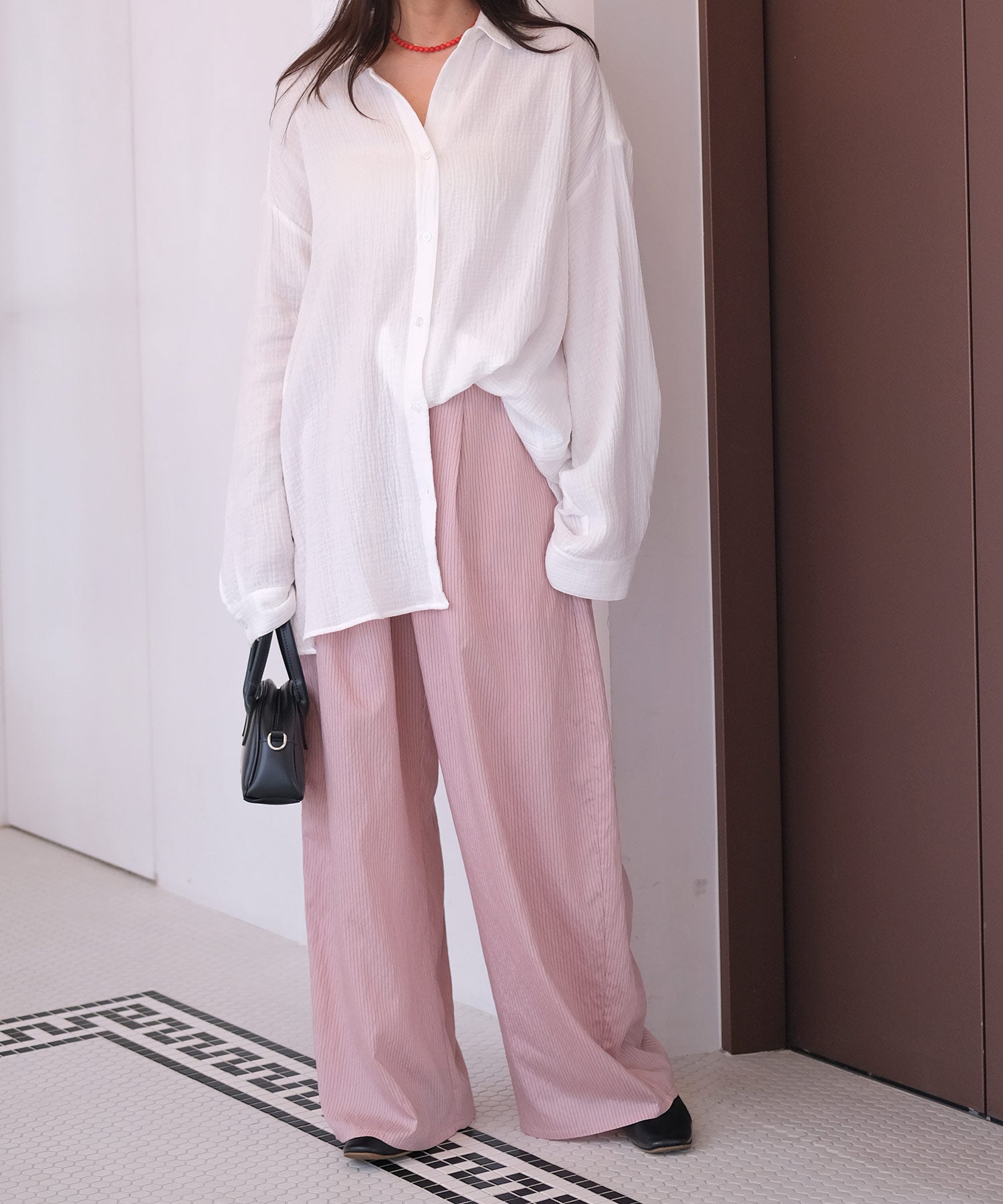 柔らかいコットンガーゼ素材を使用した、軽やかでヘルシーな印象にまとめてくれるシャツ。