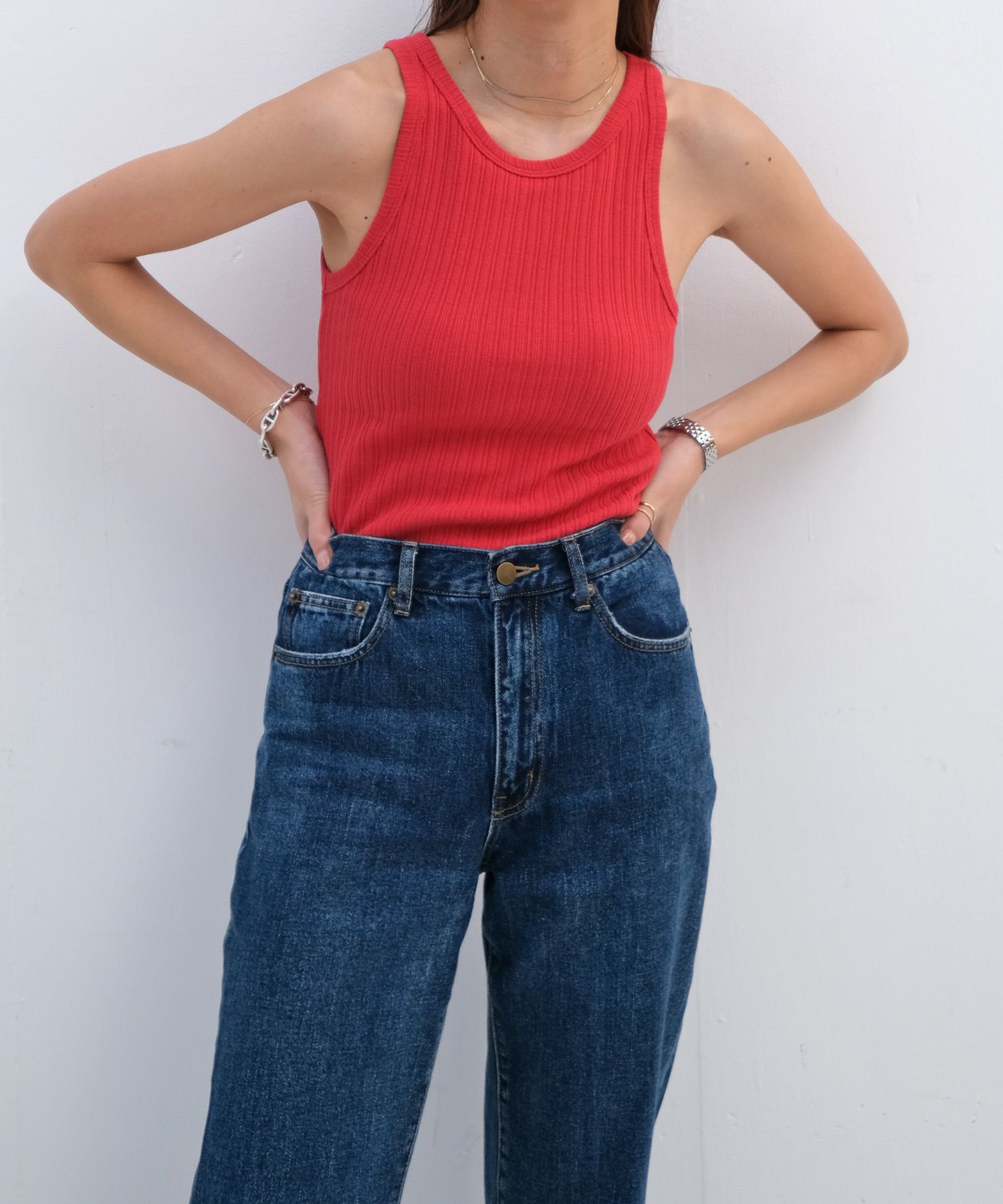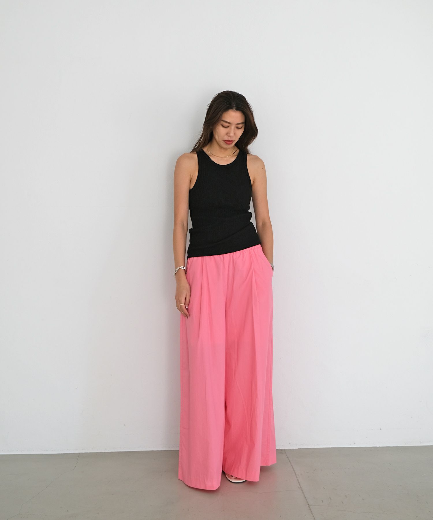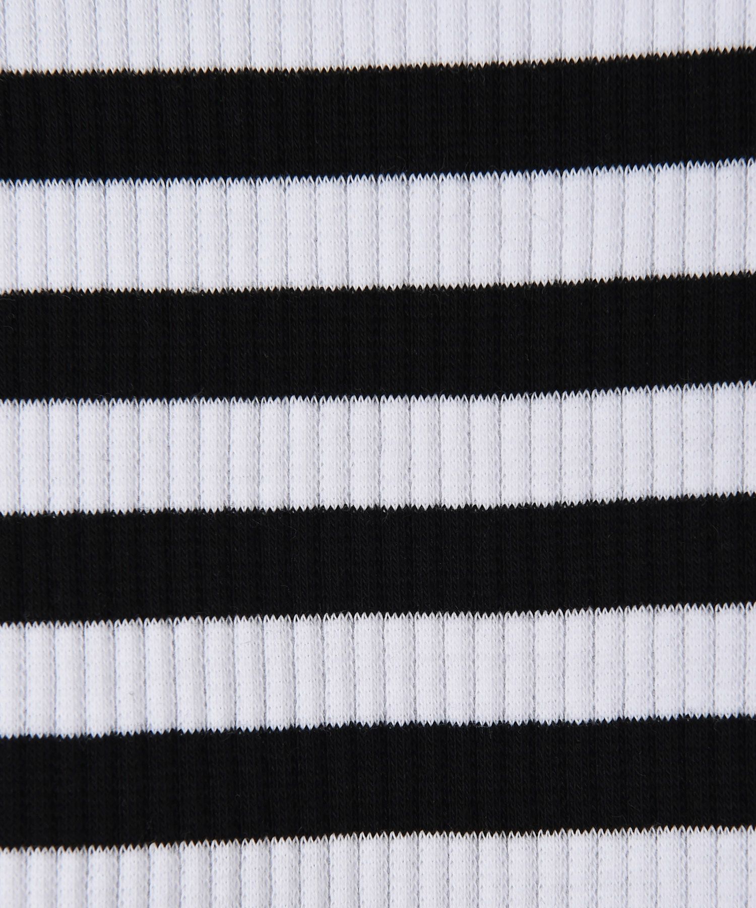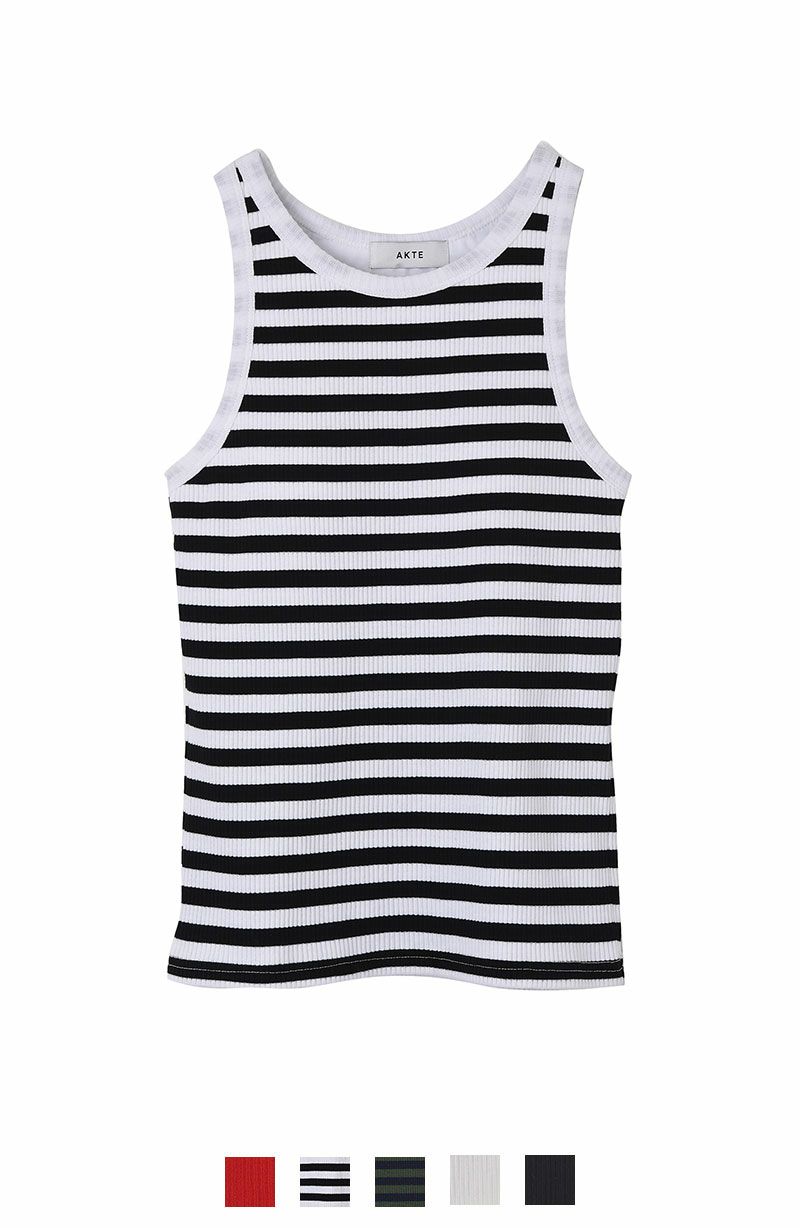 伸縮性に富んだリブ素材を使用し、ボディにソフトフィットすることで、すっきりとしたシルエットが女性らしくヘルシーな印象に。