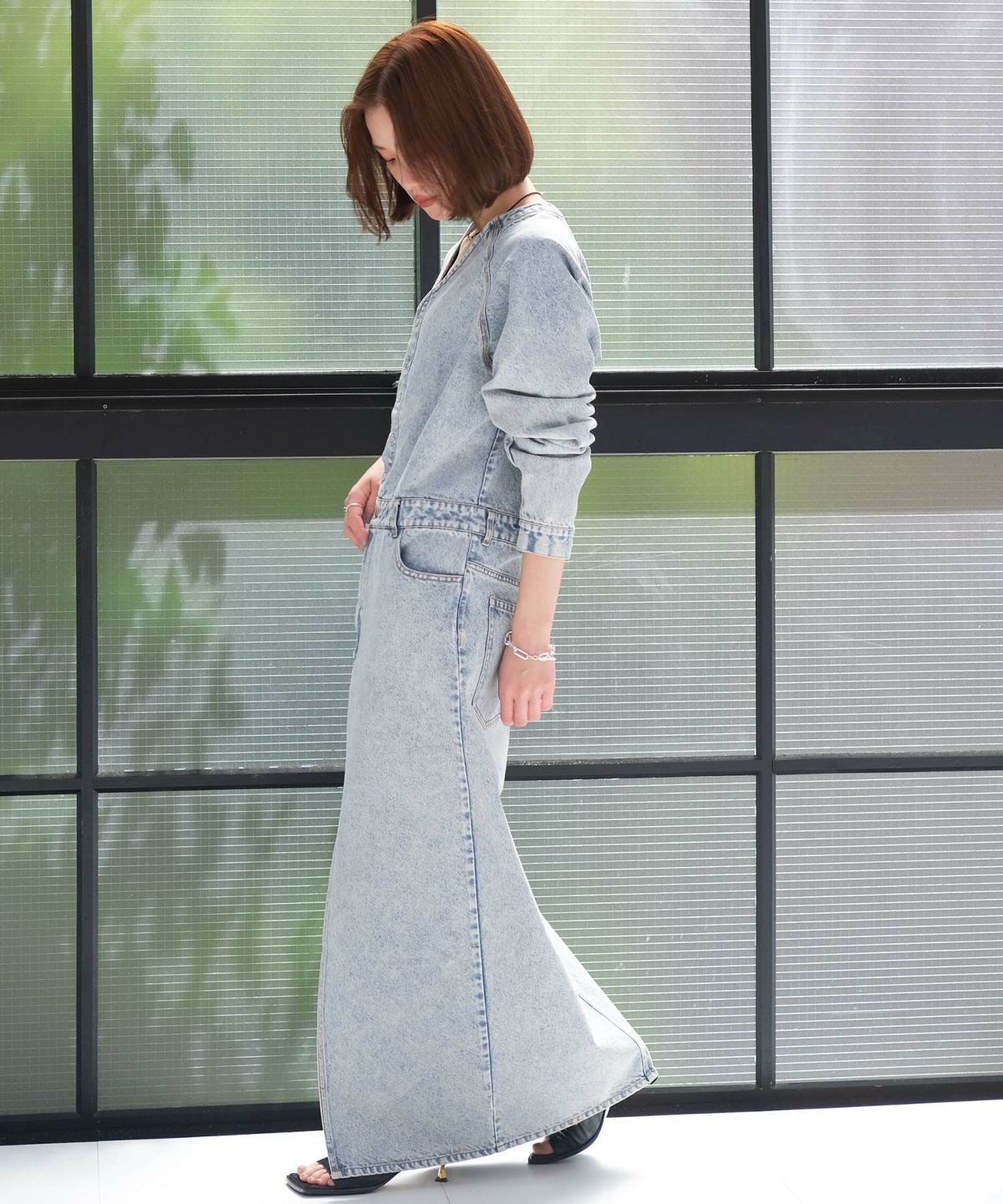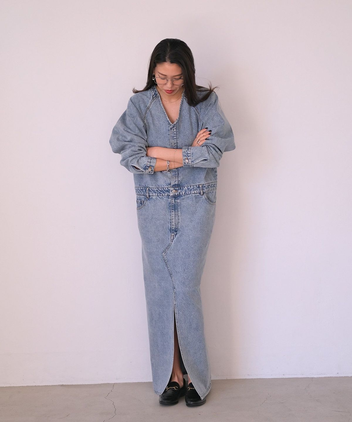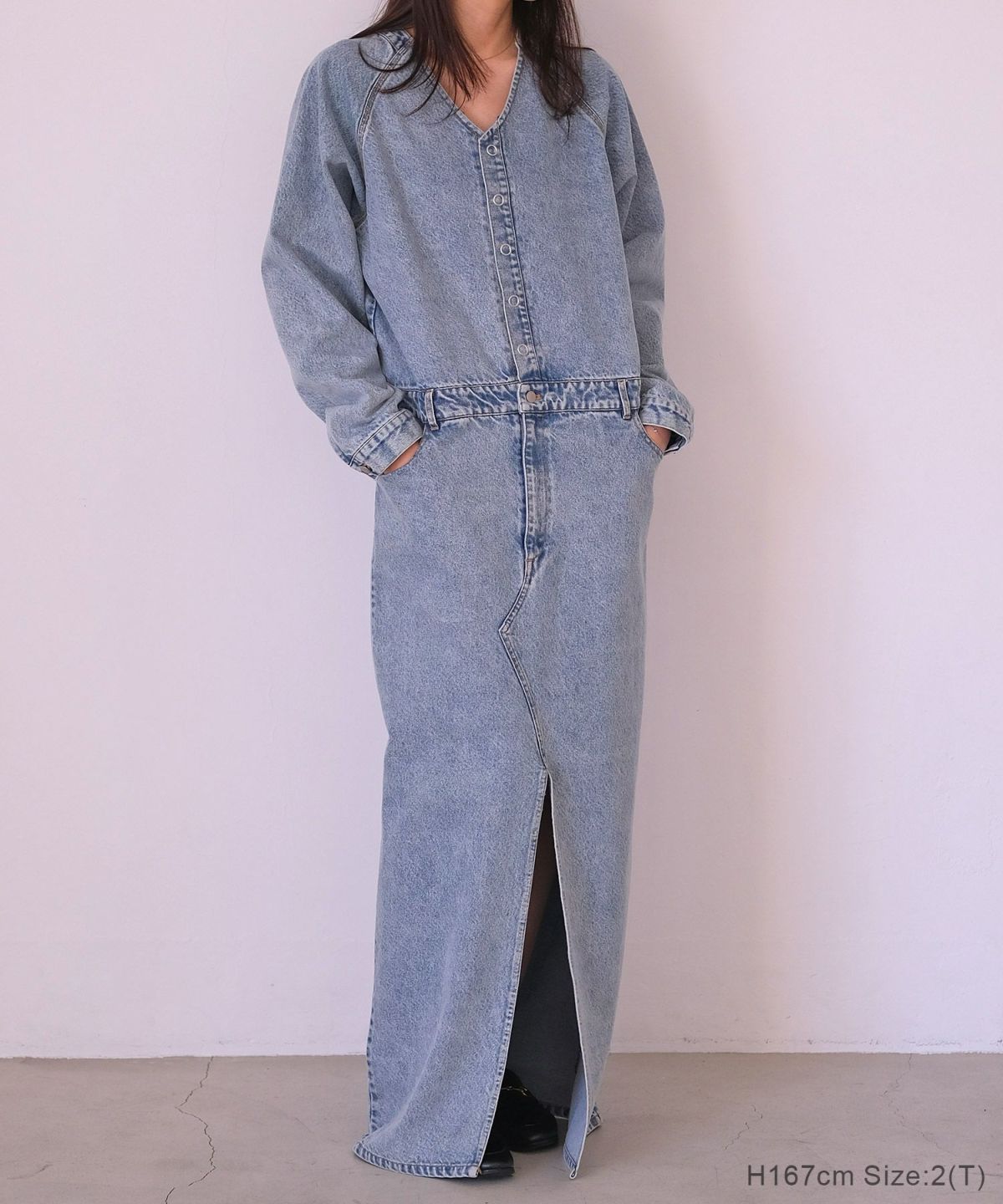Vネックデニムドレス