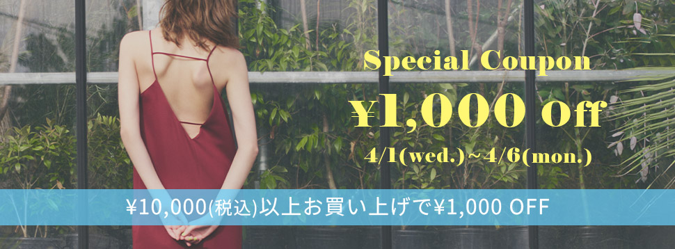 4/6(月)13:00まで、¥10,000(税込)以上のお買い上げで、今すぐ使える¥1,000 OFFクーポンをプレゼント!