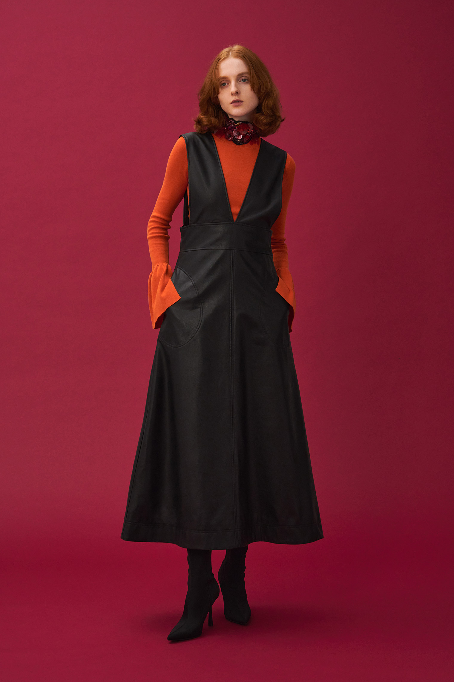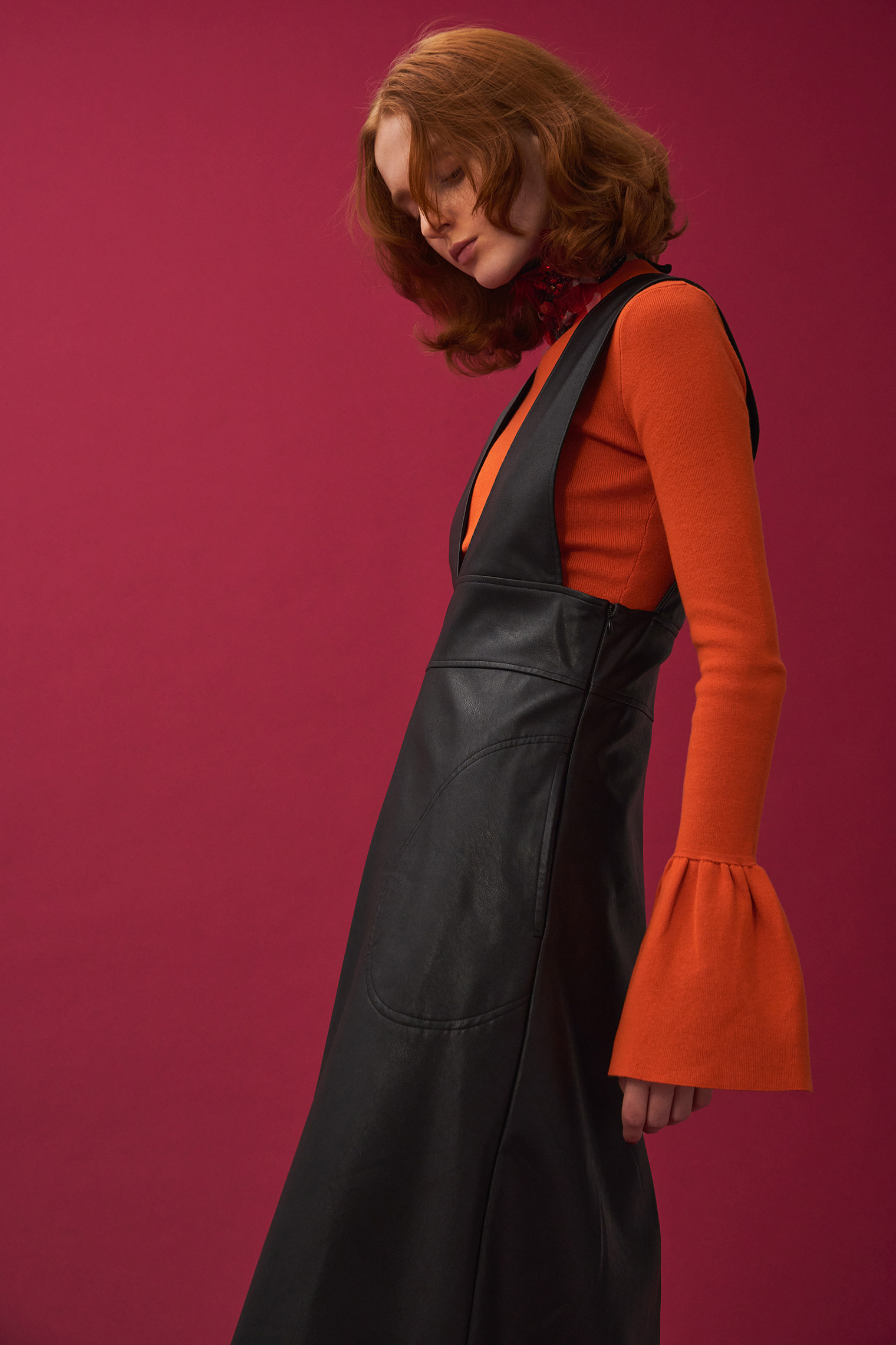 フェイクレザージャンパースカート ¥19,800 (tax in)