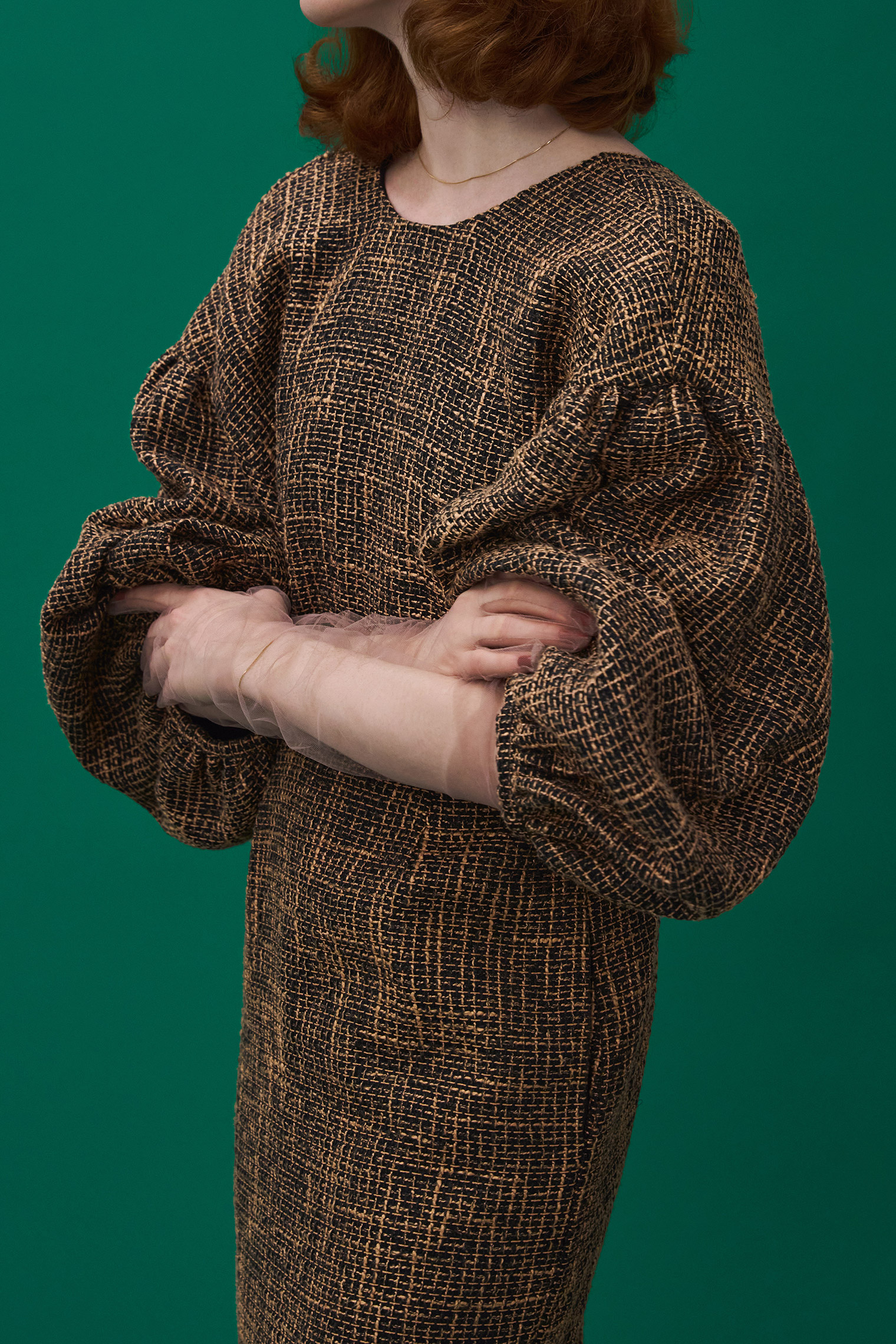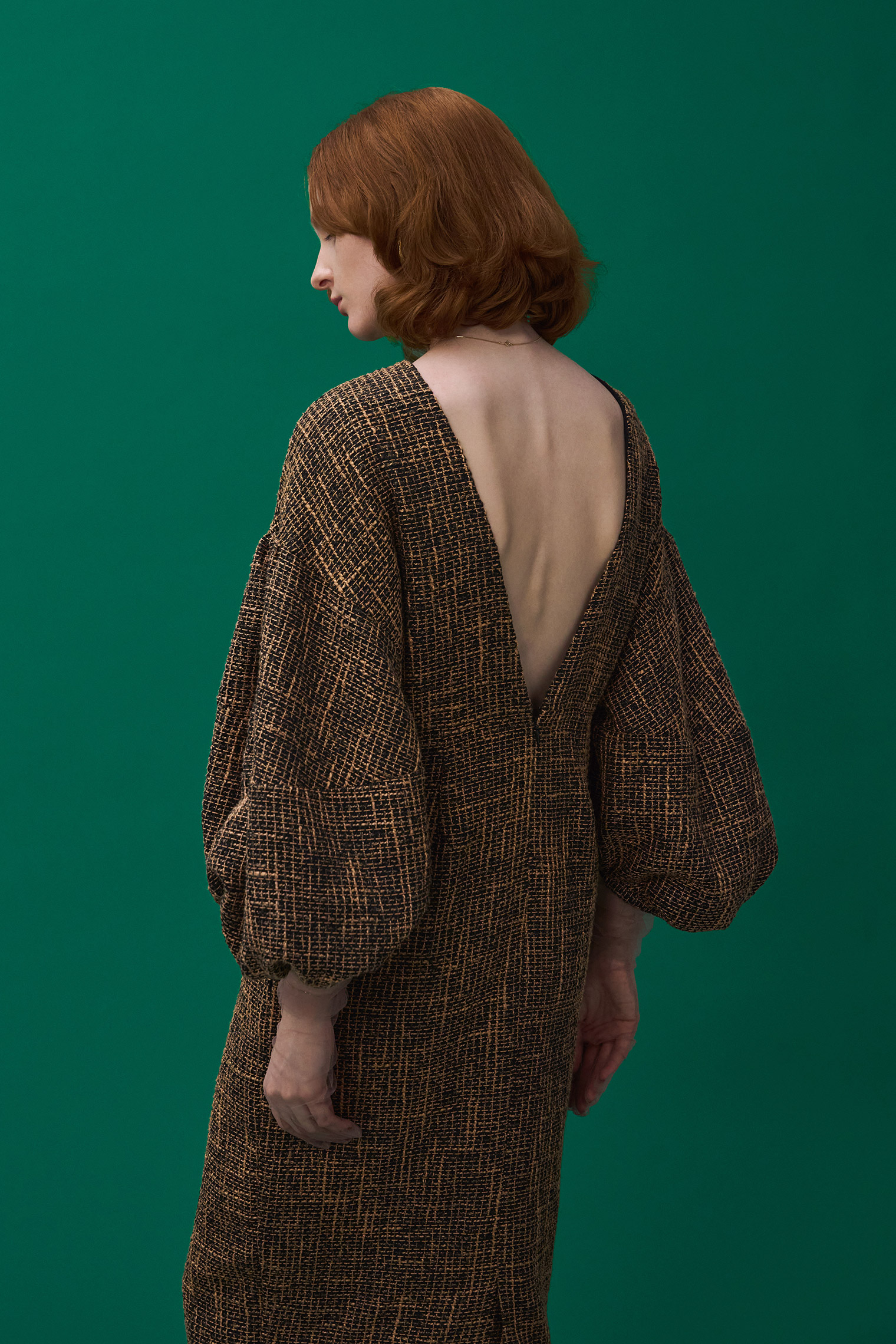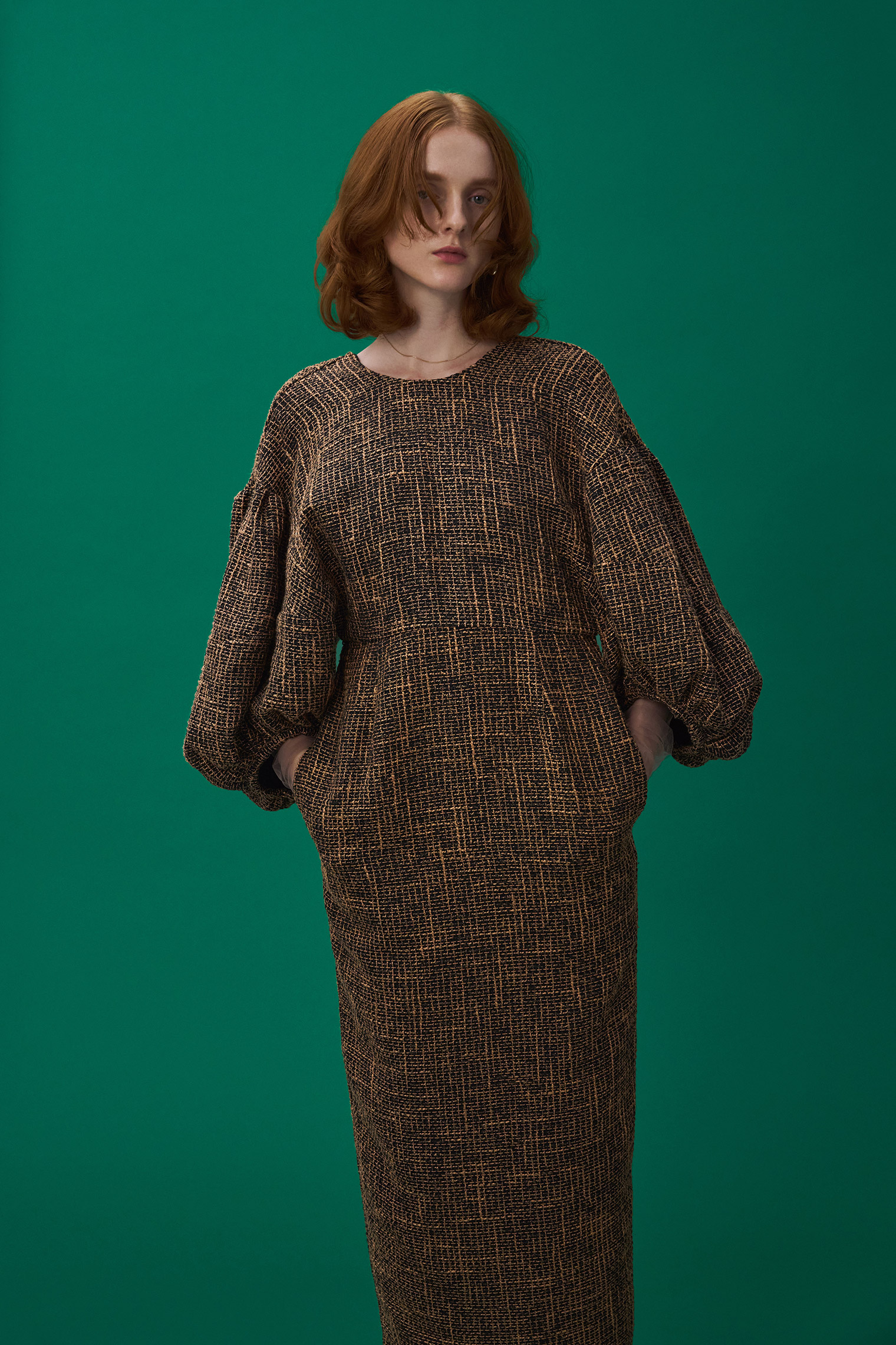 バルーンスリーブツイードワンピース ¥19,800 (tax in)