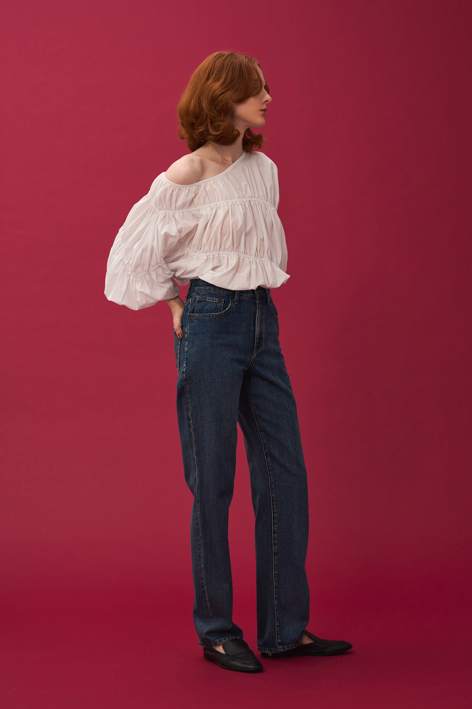 デザインギャザーバルーンブラウス ¥14,850 (tax in)