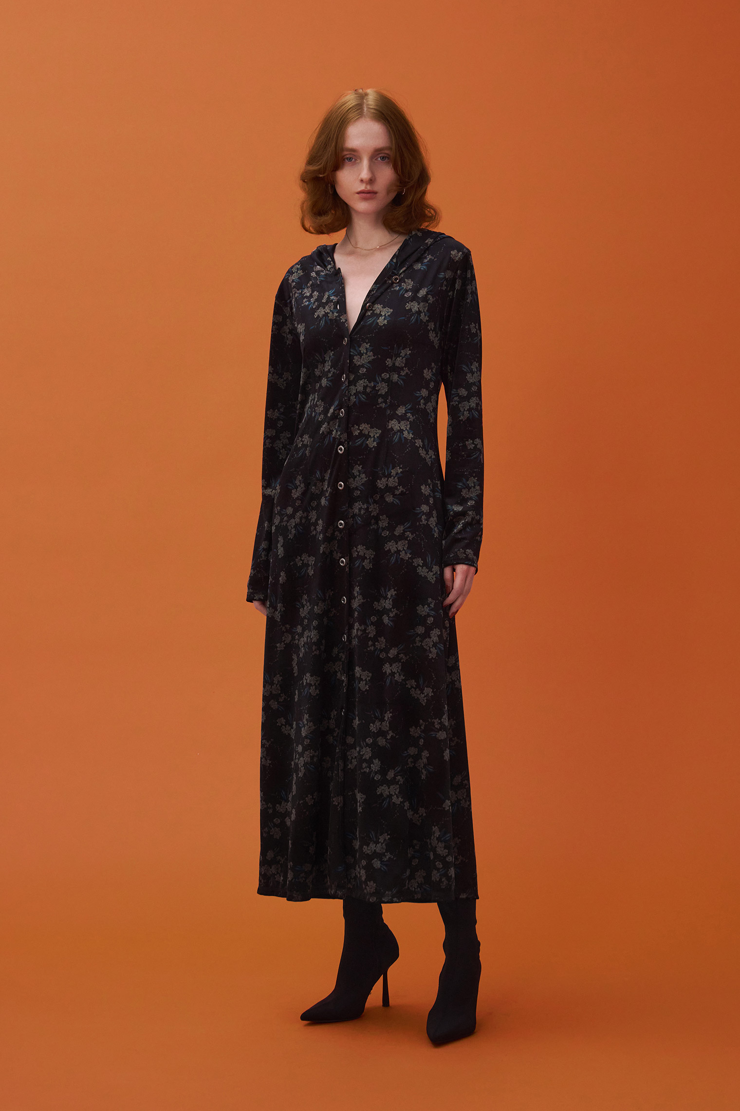 フーディーベロアロングワンピース ¥16,500 (tax in)