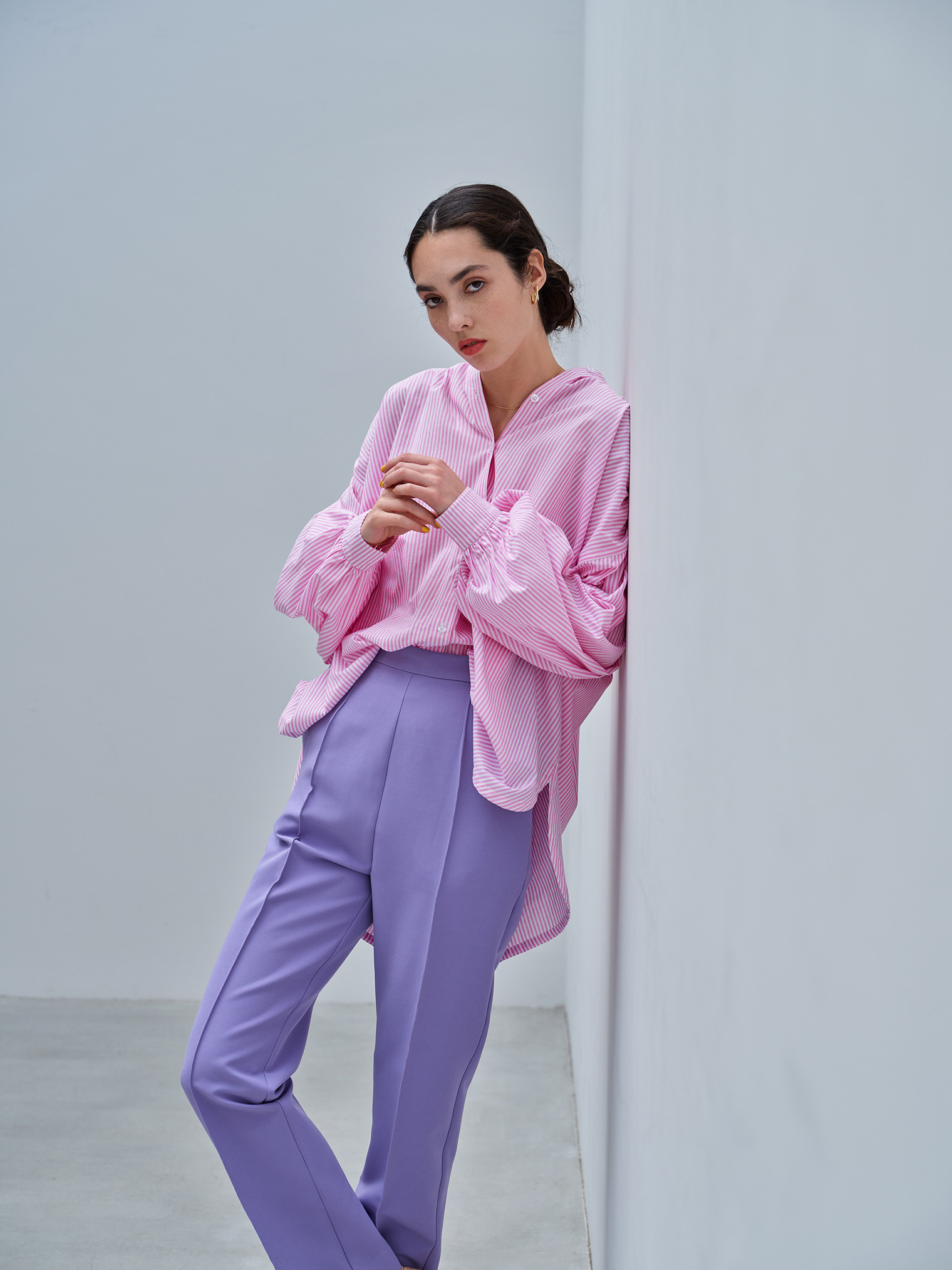コットンクレープボリュームシャツ ¥13,200 (tax in)
