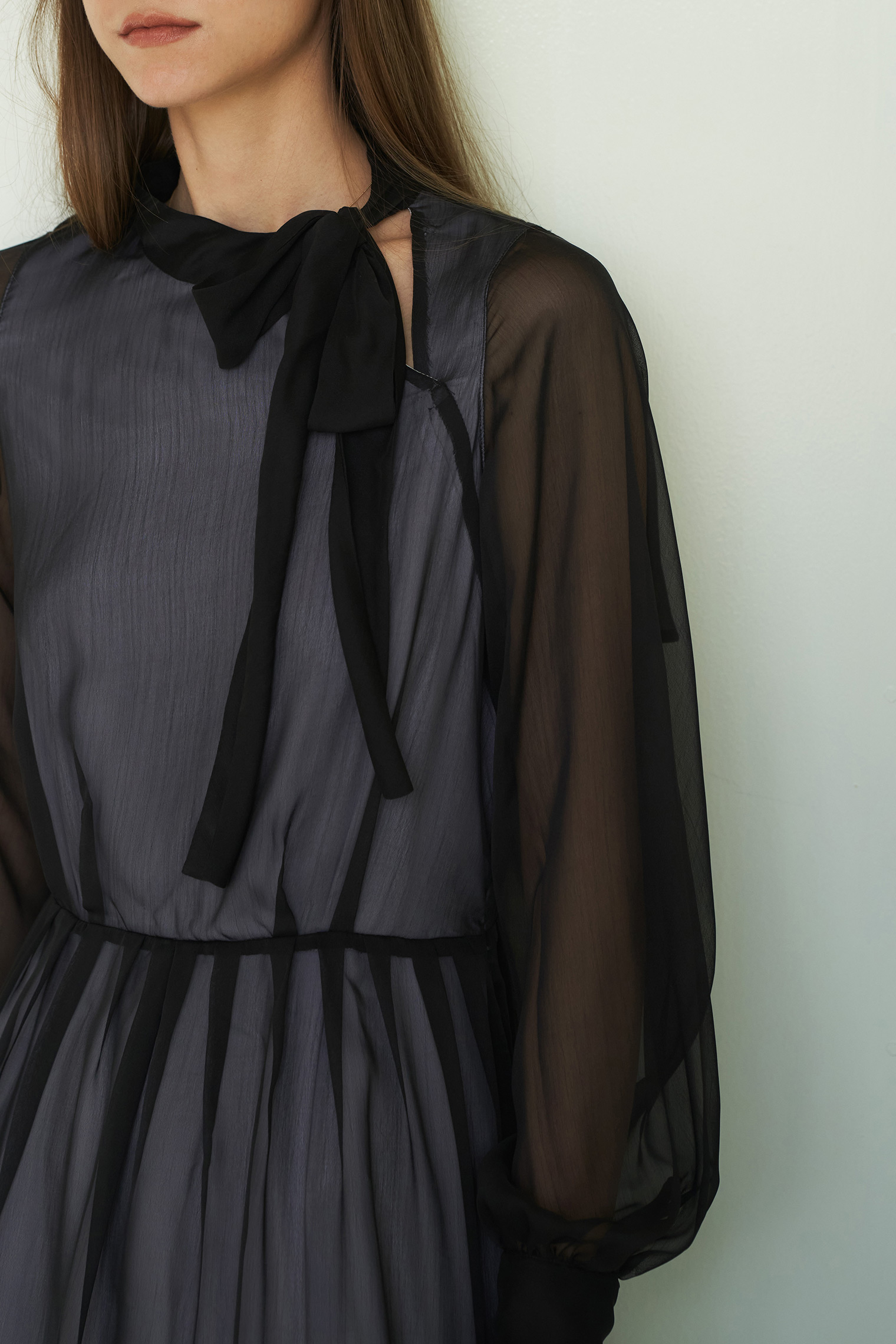 サイドネックボウタイワンピース ¥18,920 (tax in) ハーフムーンプチピアス ¥2,970 (tax in)