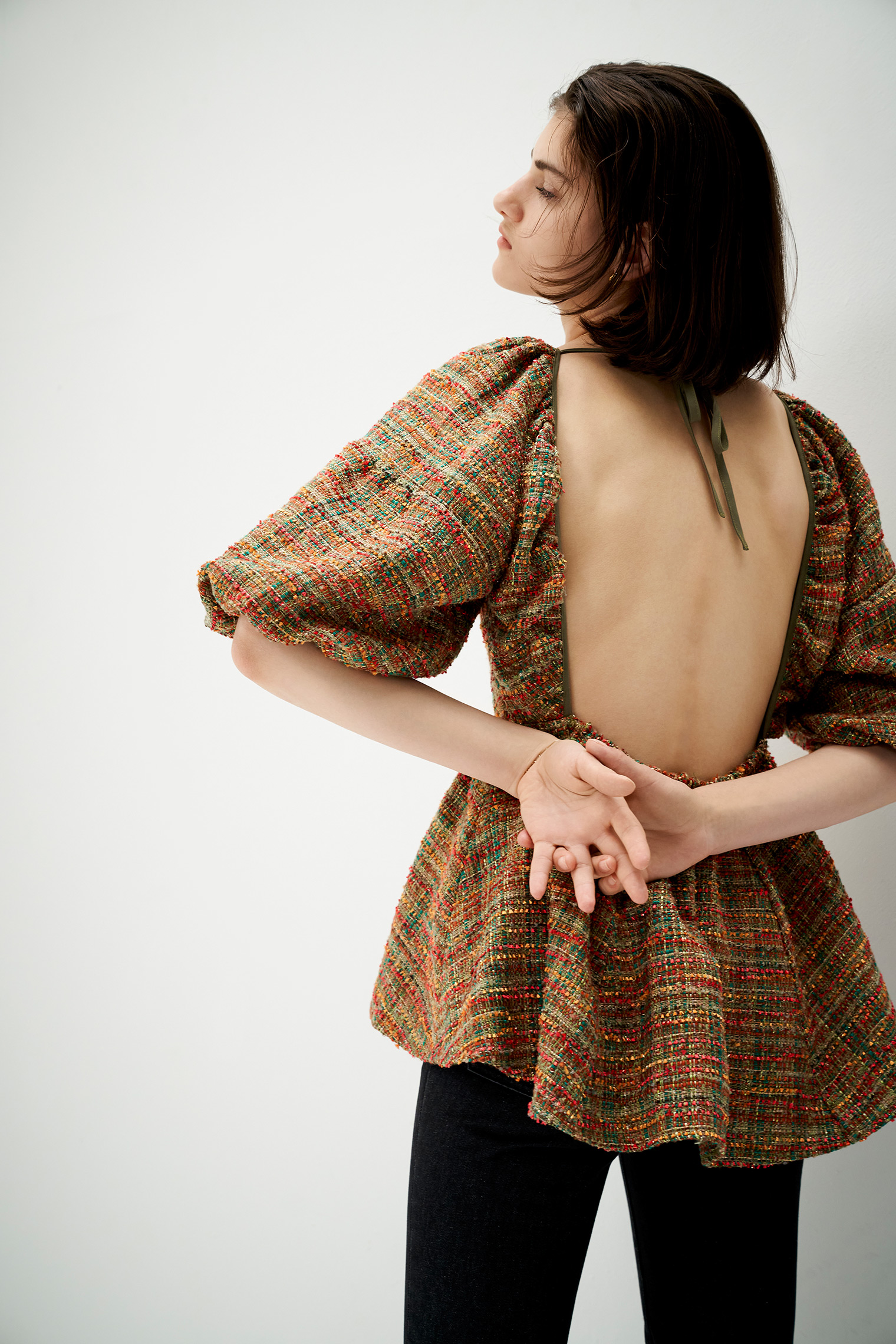 ワイドスリーブシャーリングブラウス ¥12,500+tax