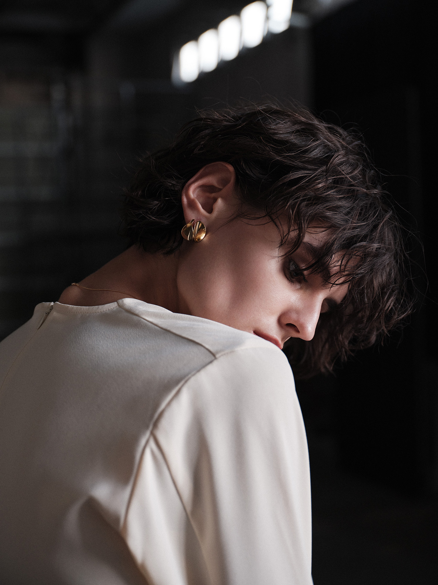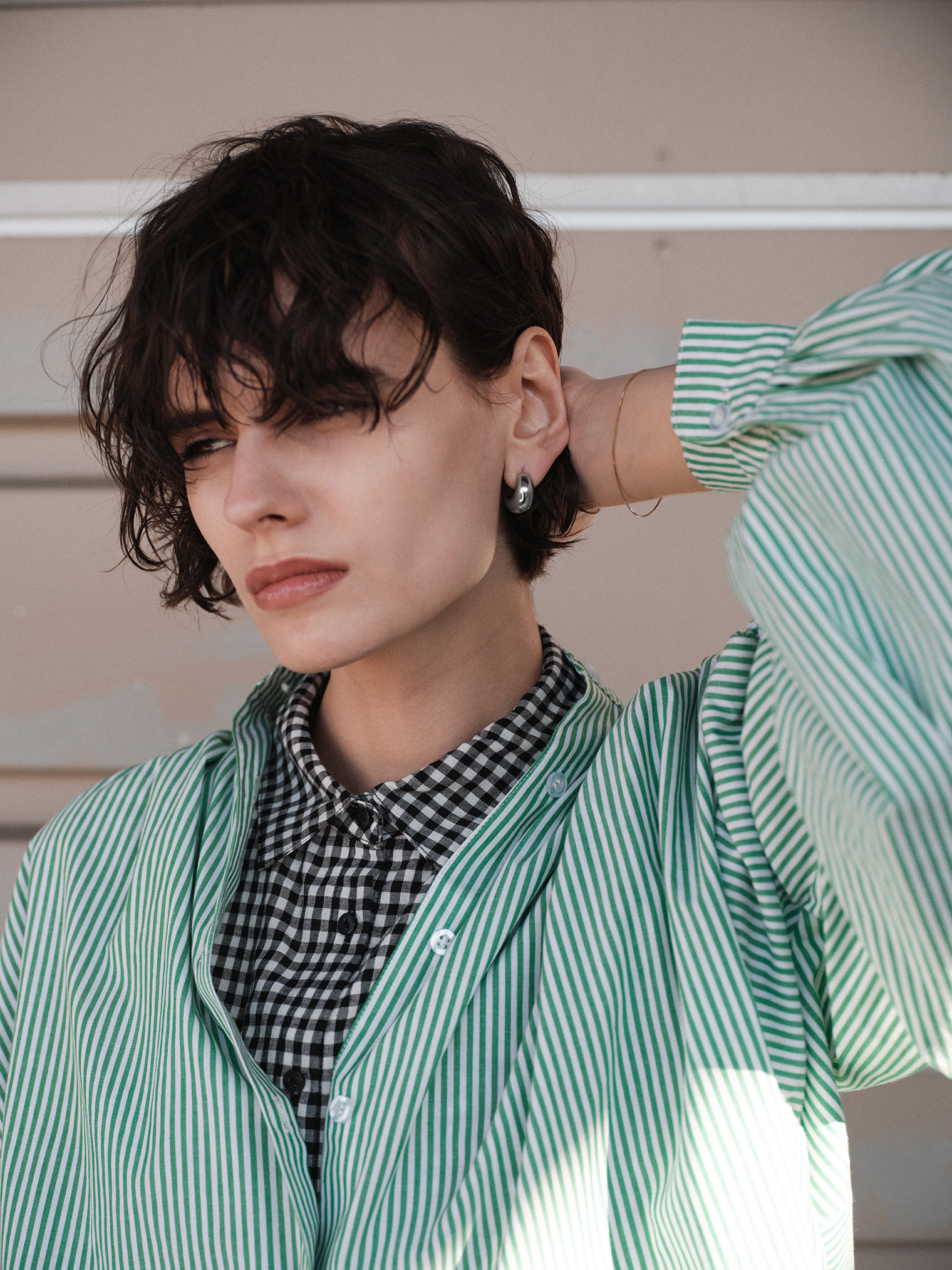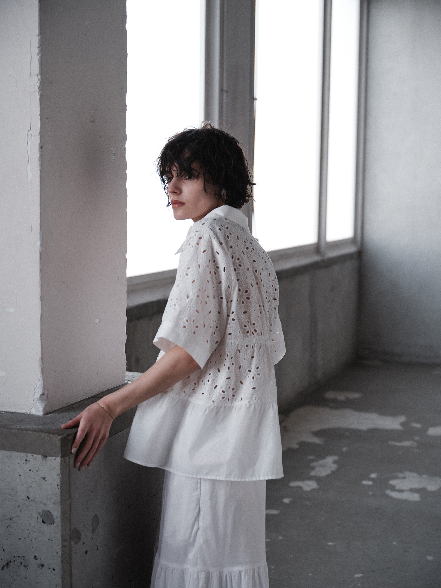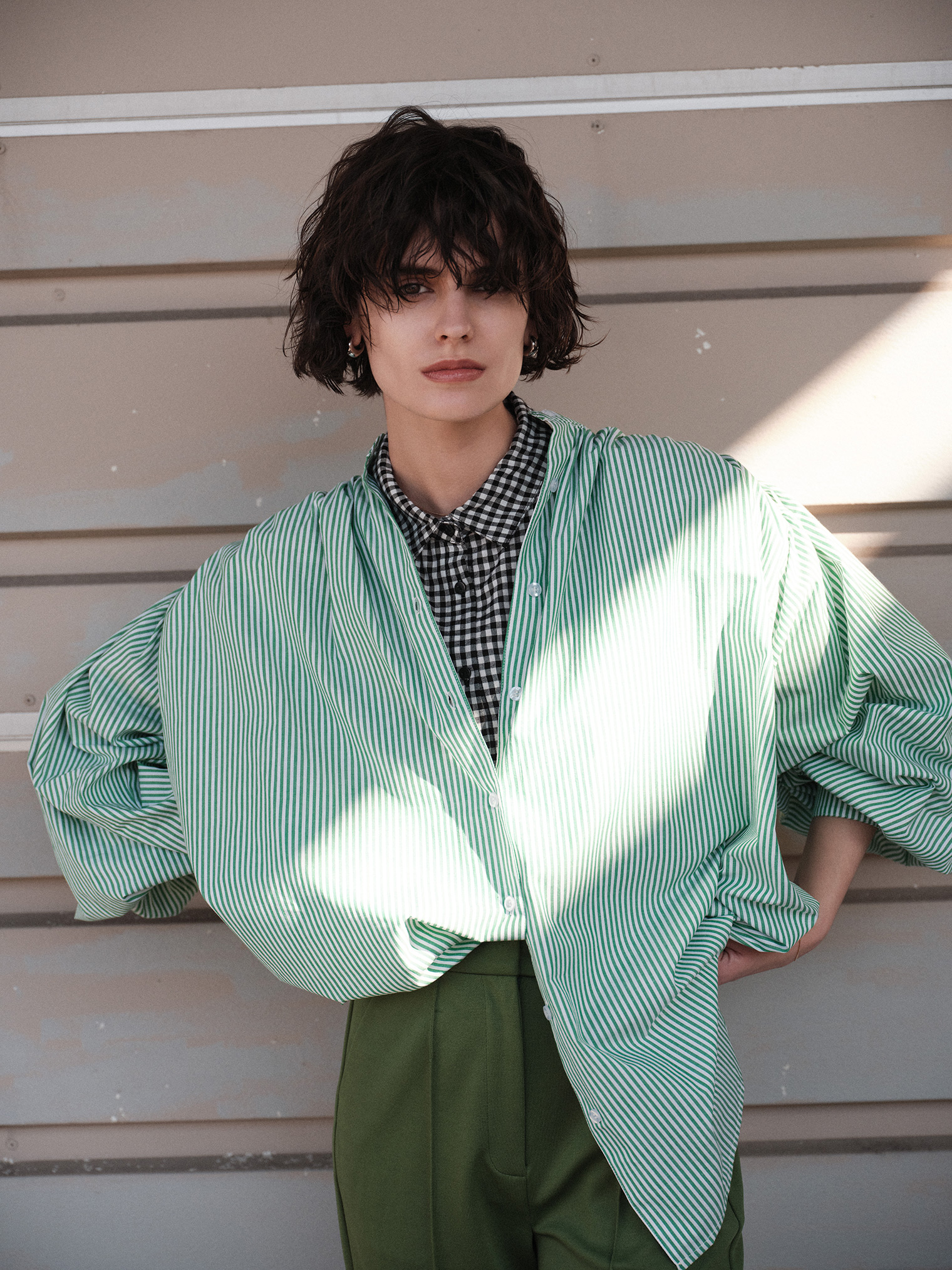コットンクレープボリュームシャツ ¥13,200 (tax in)