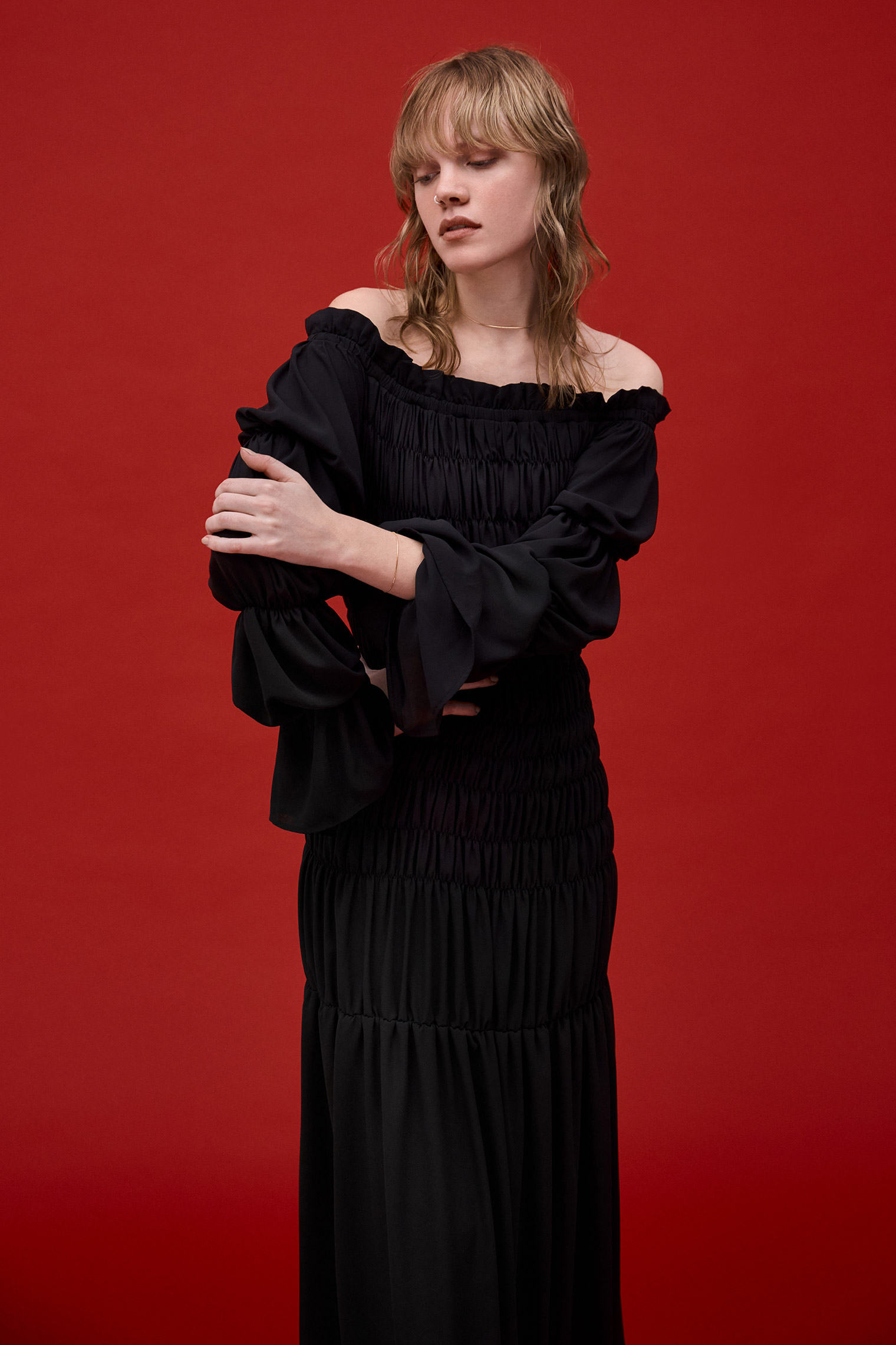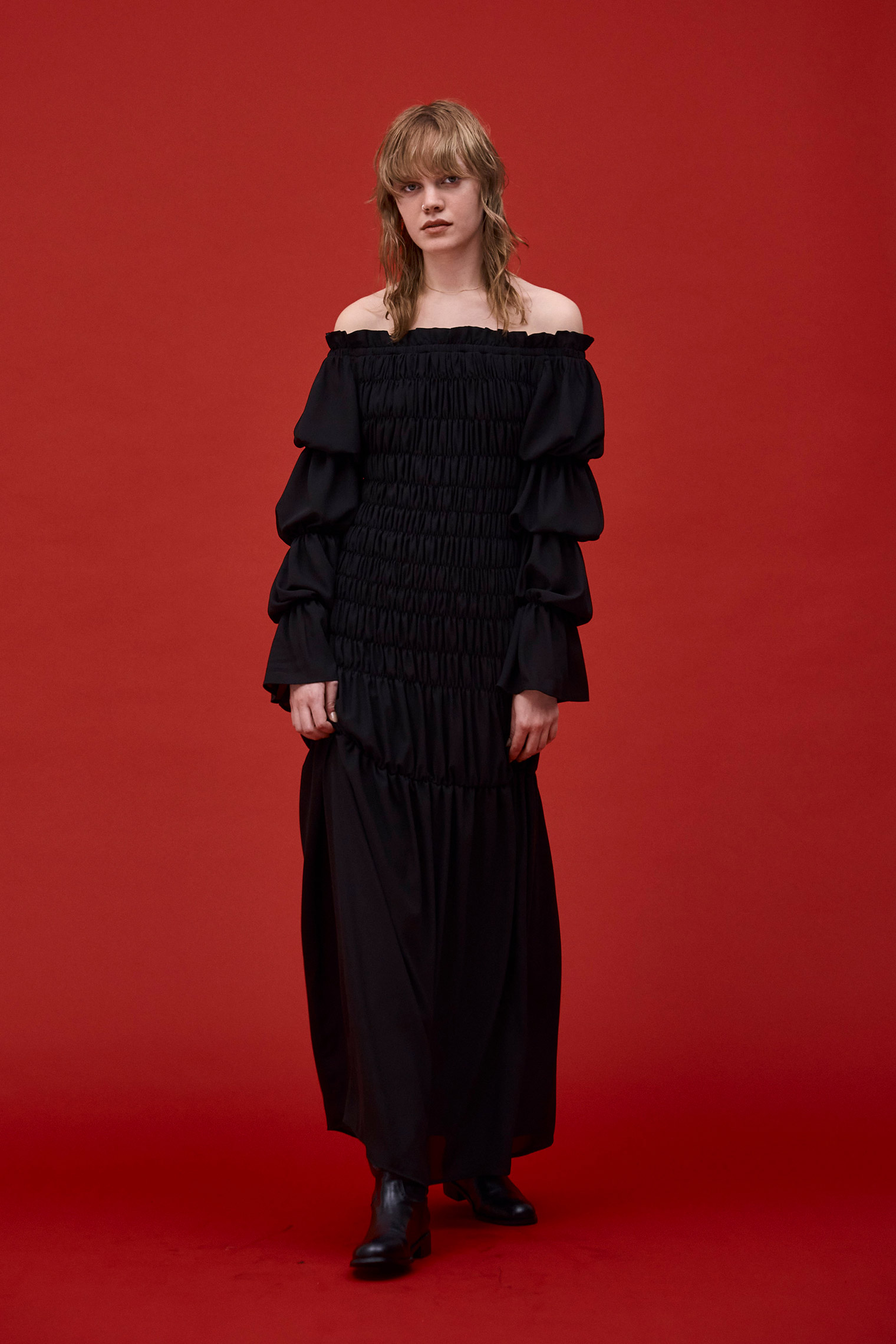 シャーリングオフショルダーワンピース ¥24,200 (tax in)