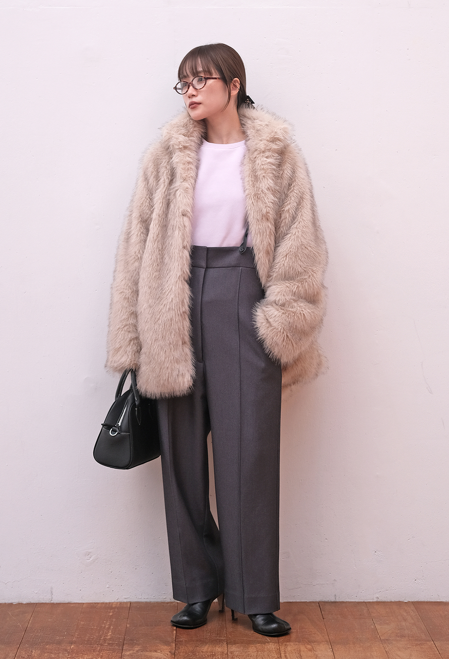 フェイクファースタンドカラージャケット ¥27,500 (tax in)