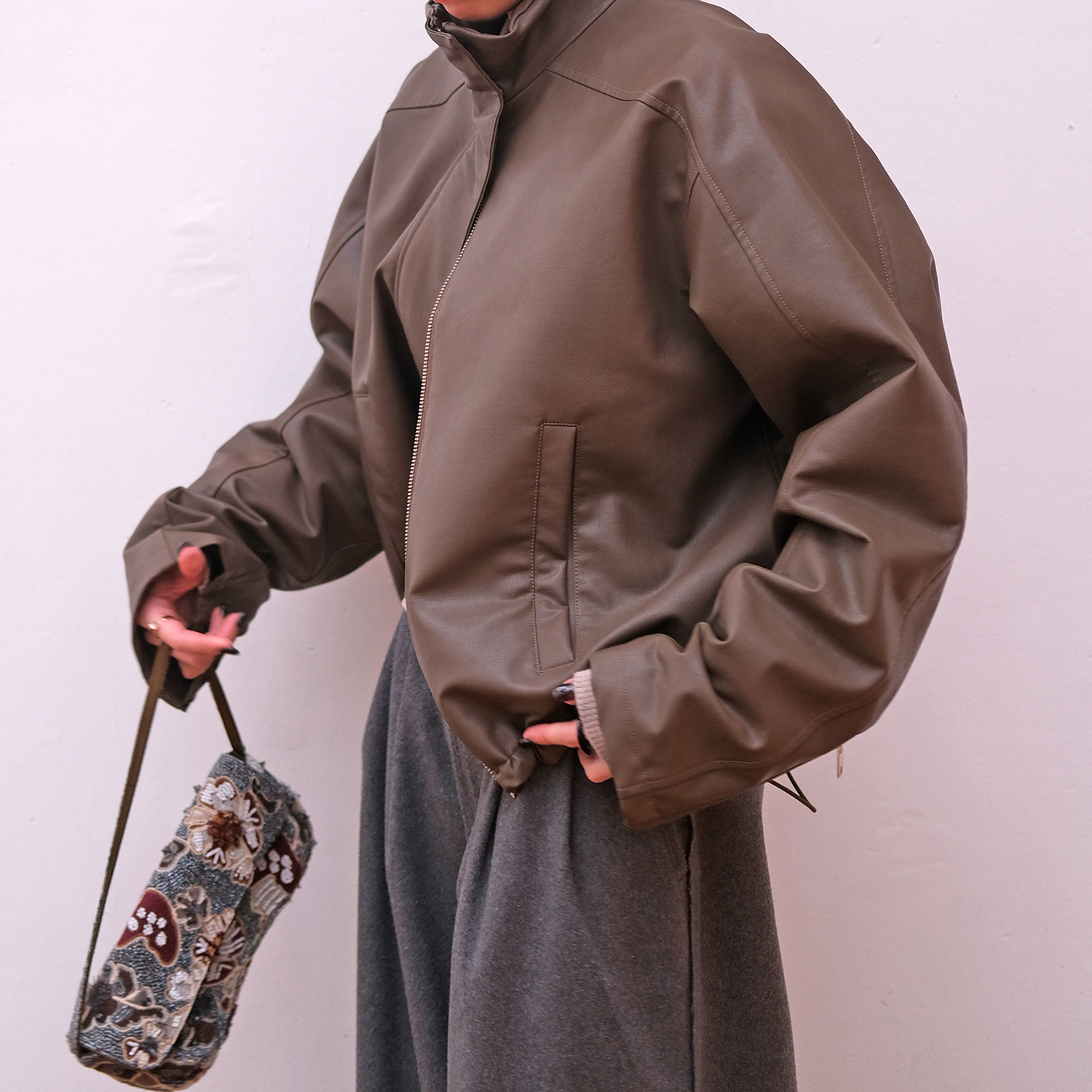 フェイクレザージップアップブルゾン ¥27,500 (tax in)