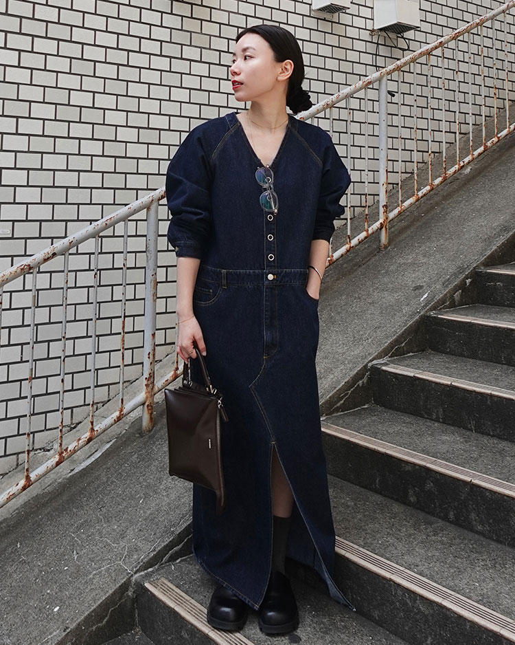 Vネックデニムドレス
