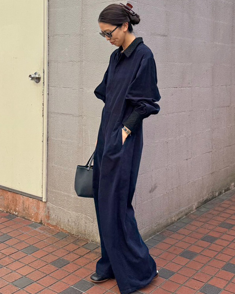 ポイントレースコーデュロイジャンプスーツ