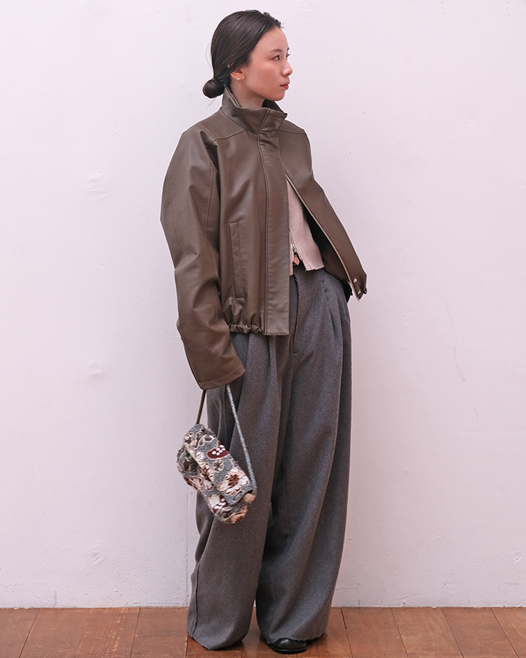 フェイクレザージップアップブルゾン
