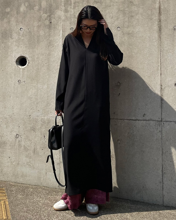 ディープVネックサッシュベルトワンピース